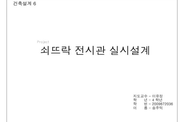 * 과제내용 :이전의 디자인 스튜디오에서 배우고 익힌 설계지식을 종합하여 시공을 전제로 한 디자인으로 완성하는 단계이다. 건축 관련 분야인 토목, 구조, 기계설비, 전기설비 등의 기술지식을 고려하고 피난과 안전설계, 무장애설계, 에너지 절약 등의 법적인 기준과 실무적 내용을 반영하여 통합적인 실시설계 도서를 작성하는 능력을 배양한다.* 포스트내용 :- 대표이미지 1개- 과제포스트 - 평면도 2개 (1/100~200) - 입면도 2개 (1/100~200) - 단면도 1개 (1/100~200) - 확대 단면도 1개 (1/50) - 상세도 1개 (1/20~10)* 과제 제출 요령오픈아카이브 메뉴얼 바로가기* 과제제출 주의사항대표 이미지:!!내용: 잘 찍은 사진, 과제의 대표성 강조가시성: 300px X 300px 크기에서 잘 읽히는 내용을 담을 것.용량: 1mb 이하.* 각 이미지는 용량 2M 이하