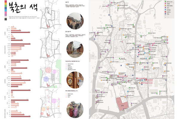 * 과제내용 :대상지인 풍문여고가 포함되어 있는 북촌의 도시 읽기로 조별 과제로 진행된다. 주어진 대지를 포함하는 지역의 지구단위계획을 포함한 도시계획 등을 살펴보고, 도시의 문화, 사회, 역사, 물리적 조건들을 다양한 각도에서 정량, 정석적으로 분석하여 비평적 시각을 배양하여 다음 단계의 대상지 계획에 반영할 수 있도록 한다.* 포스트내용 : 각 조별 분석 다이어그램각 조의 대표가 업로드하되, 각 이미지 설명에 반드시 조원의 이름을 모두 명시하도록 한다.