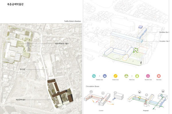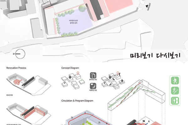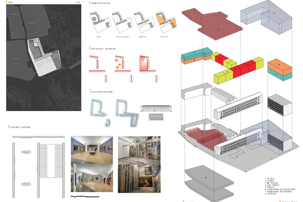 * 과제내용 : 대상지인 풍문여고의 이전후 공예박물관으로 증개축하는 프로젝트에 대한 마스터플랜북촌 읽기를 통해 습득한 비평적 시각을, 증개축 설계의 보존 및 주변상황과의 조화를 위한 계획 방향에 반영하여 개념을 설정하여 기본적인 배치 및 대지계획을 수립한다.* 포스트내용 : - 모형사진 1점 (개인 모형을 대지모형에 안착하여 찍은 사진)- 배치도 1점- 배치 개념 액소노메트릭 1점- 기타 다이어그램(사례로 조사한 사진 등은 업로드하지 않으며, 반드시 개인의 재해석에 의해 생산된 사진, 도면 등만 업로드한다)