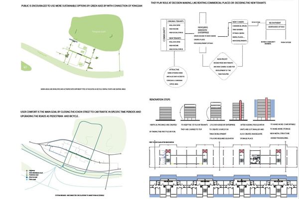 * 과제내용 : GOALS - Aggregation systems should: propose a way to organize circulation and parking. group different living arrangements and types of users, provide common facilities and new programs, provide arrangement of outdoor spaces and landscape, define boundaries, thresholds and different degrees of privacy. Address the relationship between old and new buildings. * 포스트내용 : DELIVERABLESPlans and sections, 1/200 scale.Model, 1/200 scale.