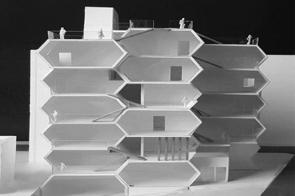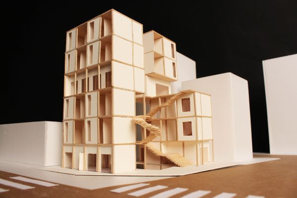* 과제내용 :  ]기존 도시조직 안에 존재하는 사회, 역사, 문화적 맥락을 분석하여 도시 안에서 서로 다른 성격, 용도, 환경을 가진 구역들 간의 상관관계를 이해하고, 단일 건축물 안에 복합적인 기능의 조합으로 이루어진 도시건축을 설계한다. 다양하고 상이한 기능과 성격을 가진 공간들이 중첩되었을 때 일어나는 여러 가지 공간적 가능성과 그 조합을 실험하여, 도시건축의 대안을 제시해본다.* 포스트내용 :]- 대표이미지 :  모형 사진을 흑백으로 전환하여, contrast 조정 후 업로드함- 제출이미지 :  도시분석-프로그램-구조-매싱 다이어그램, 배치도, 평면도, 단면도, 입면도 및 모형 사진(3컷- 사이트 모형에 얹어 전면, 코너면, 측면 촬영), 렌더링 등 기타 이미지작품설명: 간략하게 홍대 주변 지역에 대한 분석내용, 프로그램의 제안, 매싱 개념으로의 전개, 도시건축으로서의 의의를 기술하고, 설계안의 주소 / 면적 / 용도 / 건폐율 / 용적율 기입