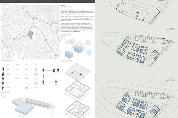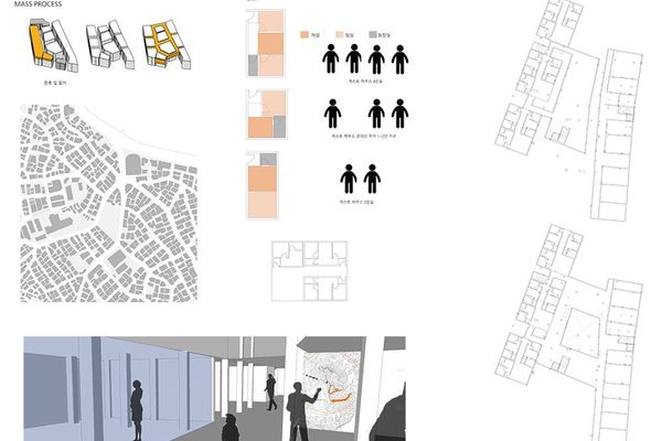 * 과제내용 : 해방촌 신흥시장의 재생을 위한 내러티브 및 프로그램을 작성하며, 건축적 개념을 제안하고 목표를 설정한다. 계획안에 담길 목적과 의의를 고려하여 기존 구조물과 새로운 우조물 사이의 보완관계를 설정하고, 신흥시장과 1인주거에 관련된 프로그램을 설정하여 도면, 이미지, 다이어그램, 모형으로 표현한다.* 포스트내용 :(1) 대표이미지: 모형사진 혹은 대표 꼴라쥬 이미지의 부분 crop(2) 포함사항- 모형사진 2컷- 패널 이미지- 패널에 포함된 이미지들을 각각 업로드- 설명: 패널에 포함되었던 글이나 발표를 위해 작성하였던 글을 요약하여 정리