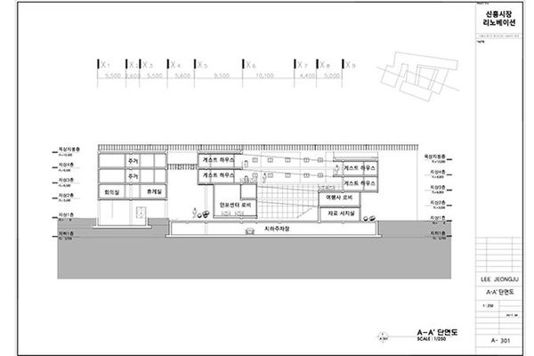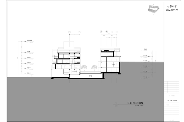 * 과제내용 : 신흥시장 리모델링 계획안 도면에 미적인 형태나 공간 및 기능적 프로그램 등을 해결하고, 무장애 설계, 안전 및 피난 설계, 증개축 보수 설계, 환경조절을 위한 입면 설계 등을 모두 고려한 치수 및 설명이 포함된 결과물을 표현한다.* 포스트내용 :- 대표 이미지는 배치도 혹은 단면도로 한다.- 모든 도면에는 축선, 치수, 설명 등이 함께 표기되어야 하며, 도면 시트지 형식을 지키도록 한다.- 평면도 모든 층- 입면도 2점 이상- 단면도 2점 이상