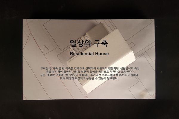 * 과제내용 :주어진 두 가족 중 한 가족을 건축주로 선택하여 사용자의 행동패턴, 생활방식과 특성 등을 분석하여 일반적 가정의 보편적 일상을 공간으로 치환하고 조직한다. 공간, 재료와 구축에 관한 지식이 복잡해진 주거공간 프로그램의 특성과 조직 원리에 따라 어떻게 확장되고 응용될 수 있는 탐구한다.* 포스트내용 : 건축물의 기본 정보 (위치, 크기, 세대 수 등) 와 개념 및 프로그램 분석 다이어그램(이미지 2-3장) 및 짧은 설명 (100자), 도면(이미지 5-6장) , 모형 사진(이미지 3-4장)을 제출한다.