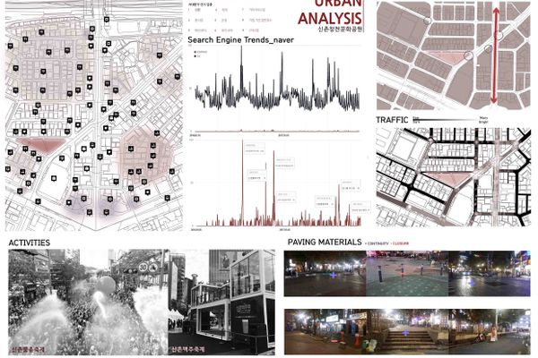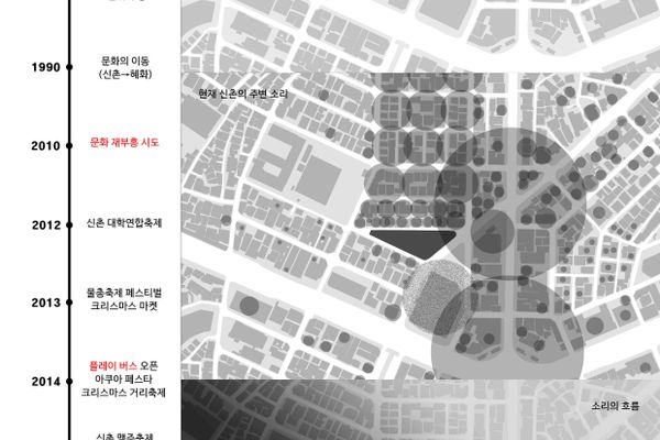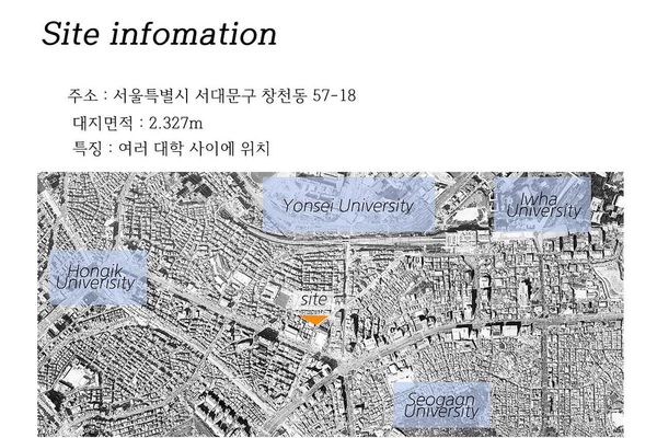 * 과제내용 : 건축가들에게 도시는 항상 창작의 영감을 불어넣어주는 원천이었다. 두번째 프로젝트 첫 과제는 ‘홍대/상수’라는 도시 지역을 탐구와 분석의 대상으로 삼는다. 이 프로젝트는 우리가 사는 일상의 도시를 탐구하고 분석하고 도큐멘트하는 연구과제를 통해, 이러한 물리적 환경의 창출에 작용하는 각종 사회적, 역사적, 문화적, 경제적, 법규적, 행태적 요인들을 분석하고 평가하는 사고를키우는 것을 목표로 한다. 또한 현상과 요인들의 핵심 인자로 작동하는 사람들의 행위, 행동 등도 관찰하고 문서, 도면 혹은 도식으로 기록한다.이 과제를 통해 본 프로젝트 대상지의 도시적 맥락 이해와 개념 도출을 위한 행태 분석 작업을 통해 프로그램작성 및 본격적인 설계과제로 넘어갈 수 있는 개념과 준비가 갖추어질 것으로 기대한다.* 포스트내용 :도시분석 패널을 JPEG로 전환하여 업로드하며, 각 다이어그램에 대한 설명을 기술