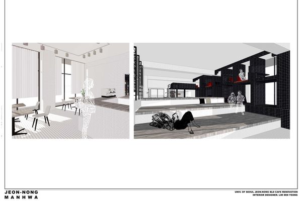 * 과제내용 : 건축설계 8은 지금까지의 건축설계 수업에서는 부분적으로만 다루어왔던 실내건축설계의 프로세스를 단계적으로 습득하고 수행하는 형식으로 진행한다. 특히 졸업 후 실무수련 과정에서 종종 다루게 될 중소규모 실내설계 프로젝트를 수행하는데 필요한 접근방식과 수행절차를 습득하기 위해, 현 시대의 사회·문화적인 요구를 반영한 주제를 참신한 발상과 독창적인 디자인을 통해 완성도 높게 기획하고 표현하는 프로젝트를 수행한다. 실내디자인 프로젝트의 과정에서는 개념과 공간감 뿐 아니라 재료, 디테일 및 조명 등의 기술적 해결방법을 실제 적용사례에 대한 리서치를 통해 적용시킨다. 과제는 기획, 설계, 표현의 3 단계로 구분되며, 최종 결과물은 클라이언트에게 납품되는 성과물의 형식을 취한 포트폴리오로 제출한다.* 포스트내용 : - 설계개요 및 컨셉 - 인테리어 스타일에 따른 컬러, 재료 샘플 및 3D 모델링 & 렌더링 - 기본 평면도, 가구배치도, 마감평면도, 입면전개도, 단면도, 천정평면도, 가구도면, 주요상세도