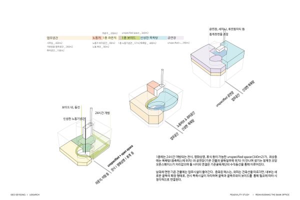 * 과제내용 : 리모델링 범위와 타당성에 대한 조사* 포스트내용 :1. 리모델링 범위에 대한 다이어그램대안 a,b,c -> 결론(1) 기존건축물의 용도변경 및 대수선: existing  vs what to be  transformed  / Elements(2) 수평증축: 수평증축의  범위 (배치,평면) (3) 수직증축: 수직증축의  범위 (단면) 2. 리모델링 용도 (1) PROGRAM의  필요성 혹은 타당성: 도시적  관점 / 시민 혹은 공공적 관점 / 역사적 관점 등(2) PROGRAM:  세부용도 / 층별 용도 / 면적의 배분 (3) 용도에 따른 법규의 해석 3. 리모델링 전략 (1) FORMAL  INTERPRETATION: 선례분석을 통한 건축적 전략에 대한 개인의 해석과 본  건물로의 대입 (주의: 선례분석의 사진을 나열하는 것은 지양. 사진은 최대 1매로 하되, 선례의  내용과 적용방식은 반드시 학생 스스로 그린 다이어그램이나 모형으로 표현되어야 함)(2)   ELEMENTS   OF   INTERPRETATION:    SKIN,      STRUCTURE,           VOLUME,             WALL, CIRCULATION ... (AXONOMETRIC  표현이 가장 적합)(3) EXPECTED IMAGE: COLLAGE  OR CONCEPT MODEL  ( MATERIALITY 반영 가능)/ 리모델링 전략 개념이 드러나되, 기존 건물의 VOLUME 및 구조가 드러나도록. SCALE 반영(4) Principle - 리모델링 목표와 원칙을 텍스트로 정리. (1.2.3 ..)