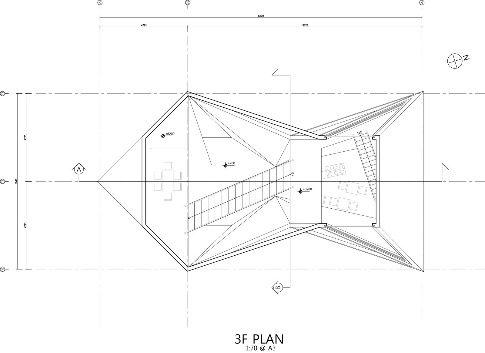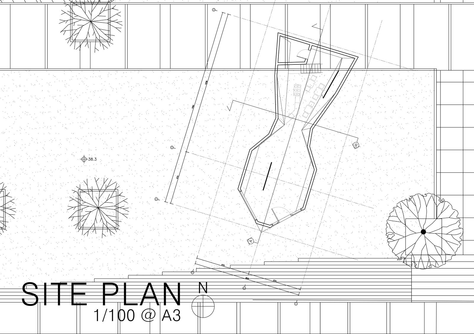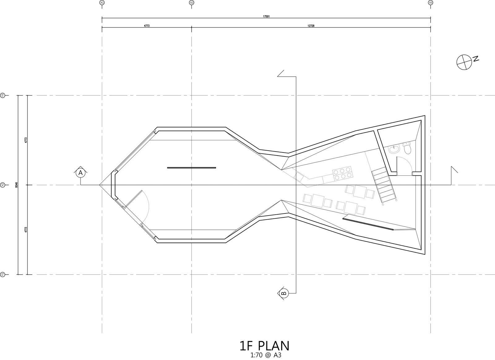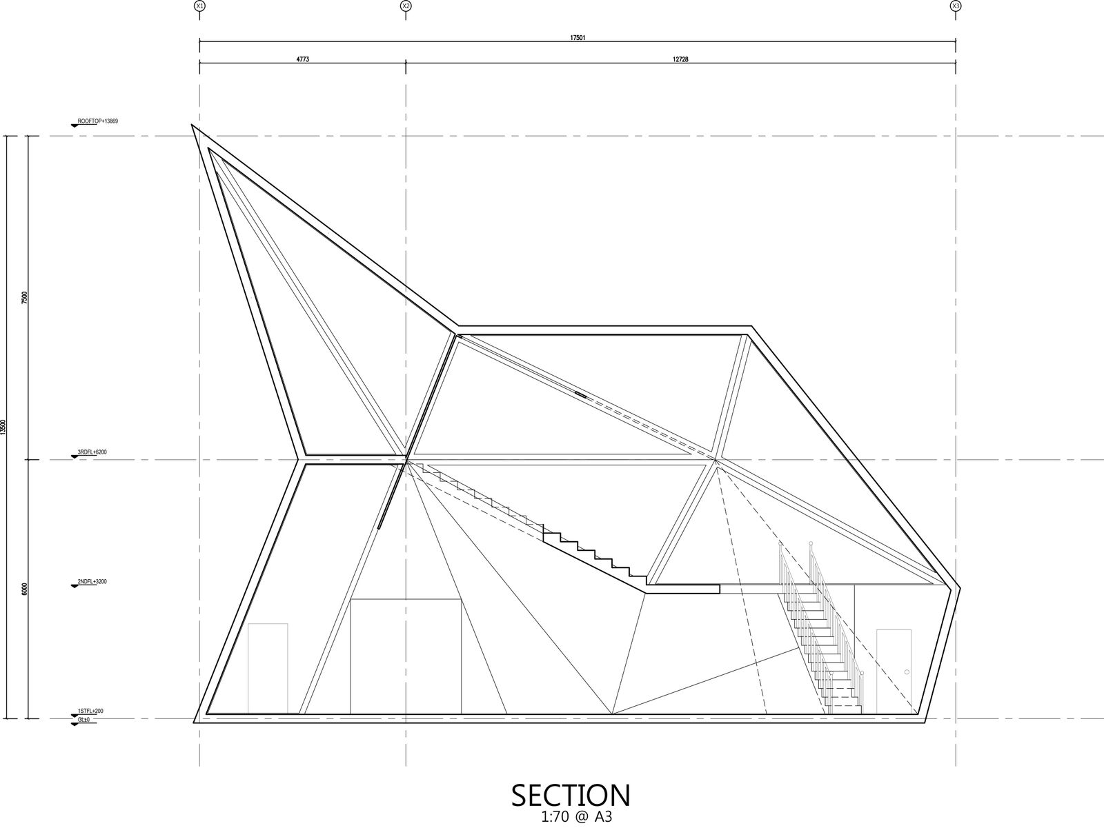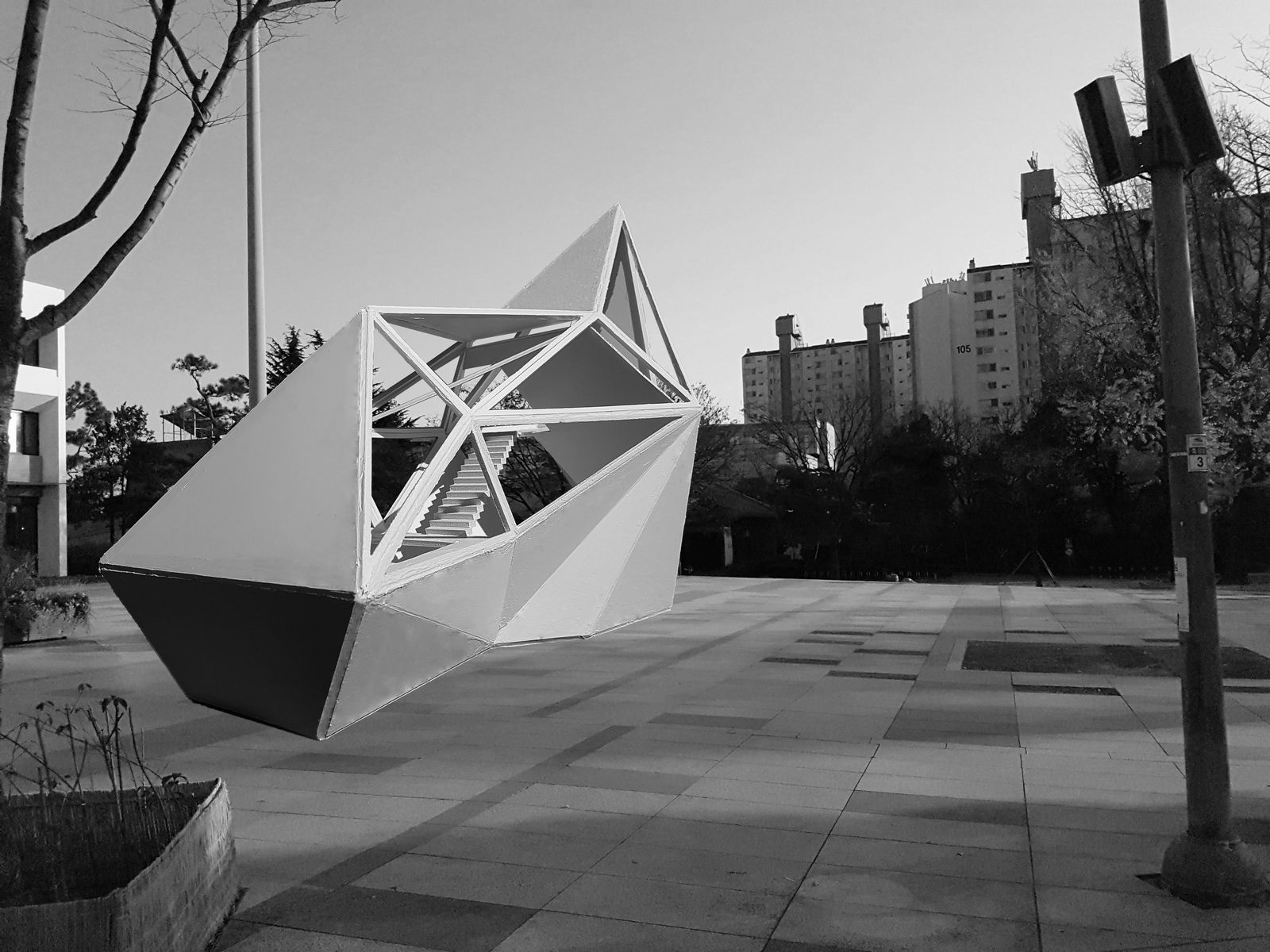 과제 2를 시작하게 되면서, 제 모델을 그저 단순한 공간으로써가 아닌, 사람이 행동할 수 있는 특정한 목적을 지닌 공간을 담고있는 실용적인 건물로 봐야했습니다. 크기에 비해 실제로 사용할 수 있는 공간이 협소한 형태이다보니, 기존의 독특함을 유지하면서 공간을 재구성하기 위해 더 많은 스터디가 필요했던 것 같습니다. 첫번째 과제와 비교해서 가장 크게 달라진 것은 두가지입니다. 양 쪽을 이동하기 위해 계단을 통한 이동이 불가피했던 기존 구조를 바꿔 1층 내를 자유롭게 이동할 수 있게 하였고, 이동 경로의 실현과 각 층간 높이 확보를 위해 모델의 각 포인트를 조정했습니다. 이 외에도 많은 변화가 있었고, 기존의 특징을 유지하기 위해 부린 고집도 있지만 가장 기억에 남는 것은 1층의 카페를 가로지르는 계단입니다. 사람이 내려갈 수 있는 공간의 확보, 카페와 화장실 공간의 구분, 기존 플레이트간 연속성의 유지 이 세가지를 모두 만족시키는 계단을 목표로 라이노를 통한 3D 스터디 끝에 원하는 형태의 계단을 만들 수 있었습니다.
