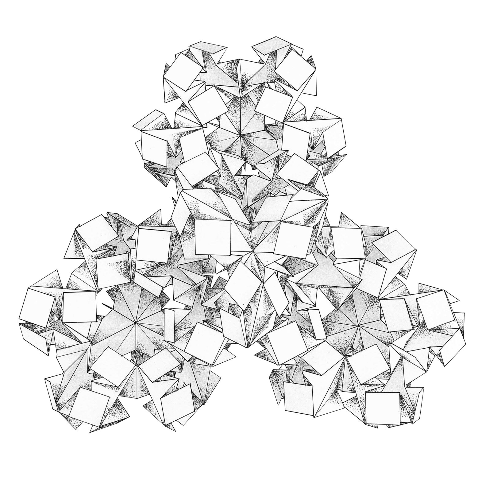 유닛 36개를 합쳐 삼각뿔 모양의 모듈을 만들었는데, 모듈의 전체적인 패턴은 정삼각형이다.