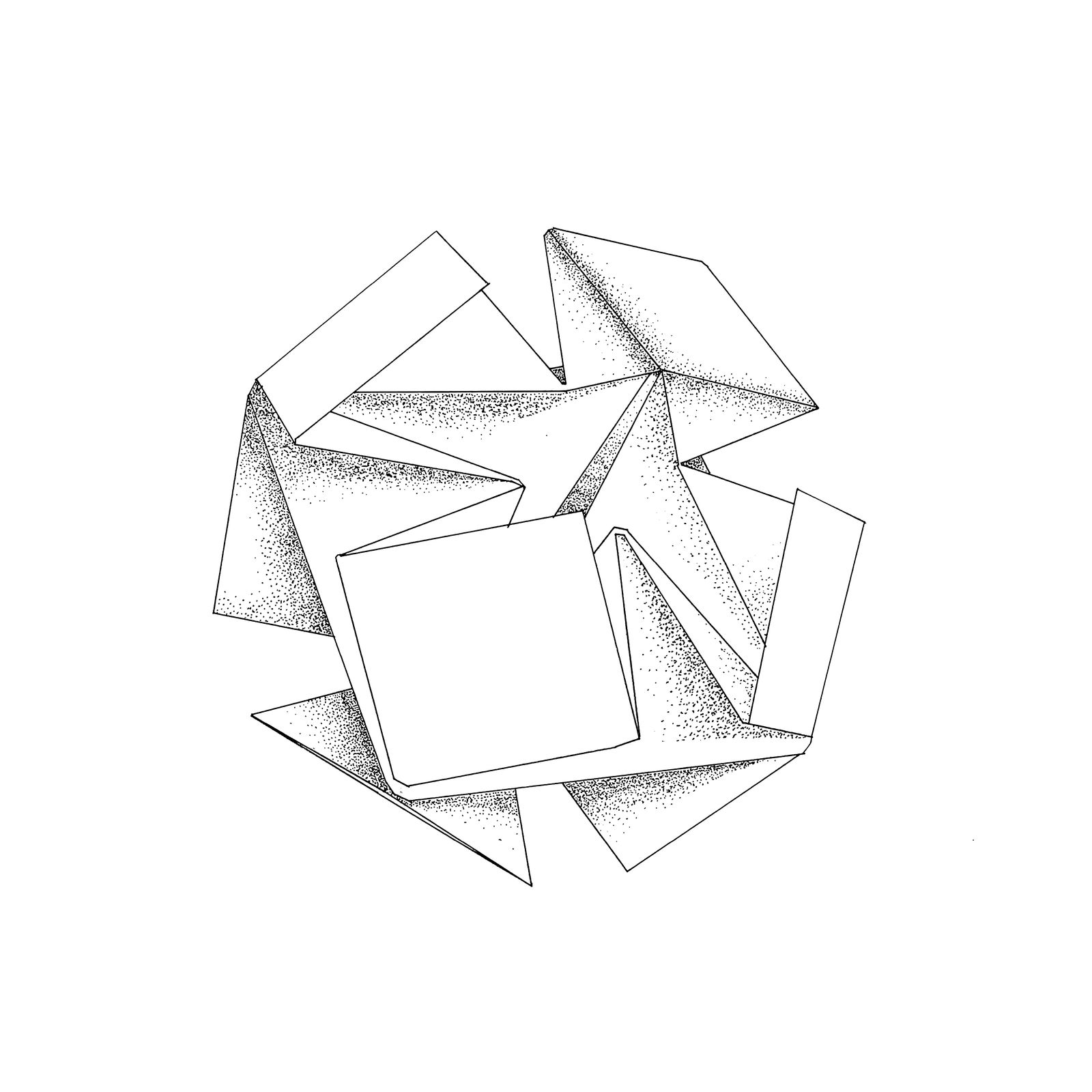 바깥쪽 그리드를 밖으로 접고 큰 대각선을 안쪽으로 접은 다음 가운데 대각선을 칼로 자르고 두 개를 합쳐 하나의 유닛을 만들었다.