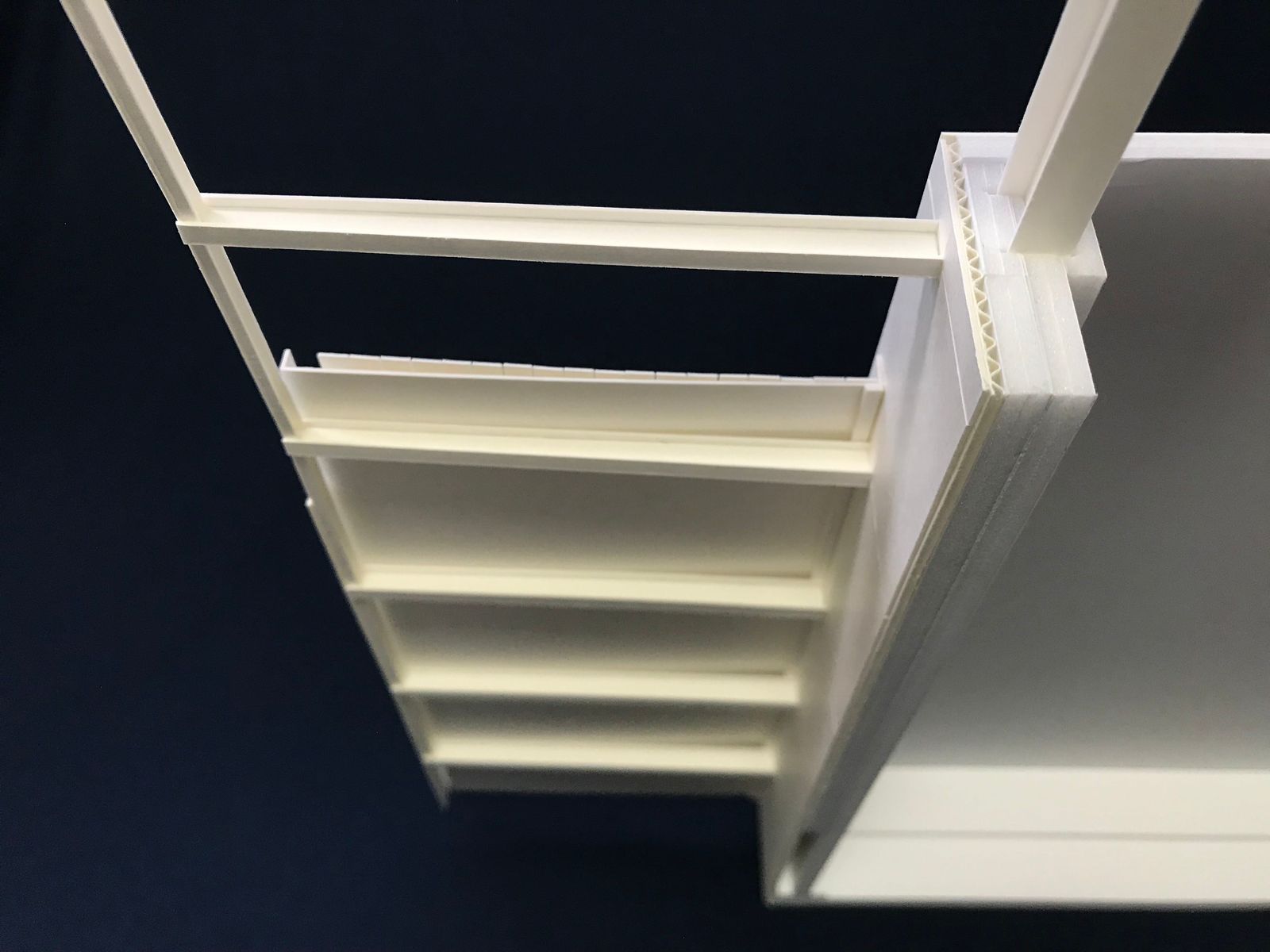 The library is reinforced concrete structure. It has 11000mm span maximum, the beam is 7500mm. When the beam support 처마 in 마당 which is outside of the building, it makes 처마 thick. I wanted the 처마 to bring real 처마 image from Hanok. It had to be thin and has small 서까래 pieces instead of massive concrete beams. It should be 3000mm of cantilever and strong enough to bear people walking on it.