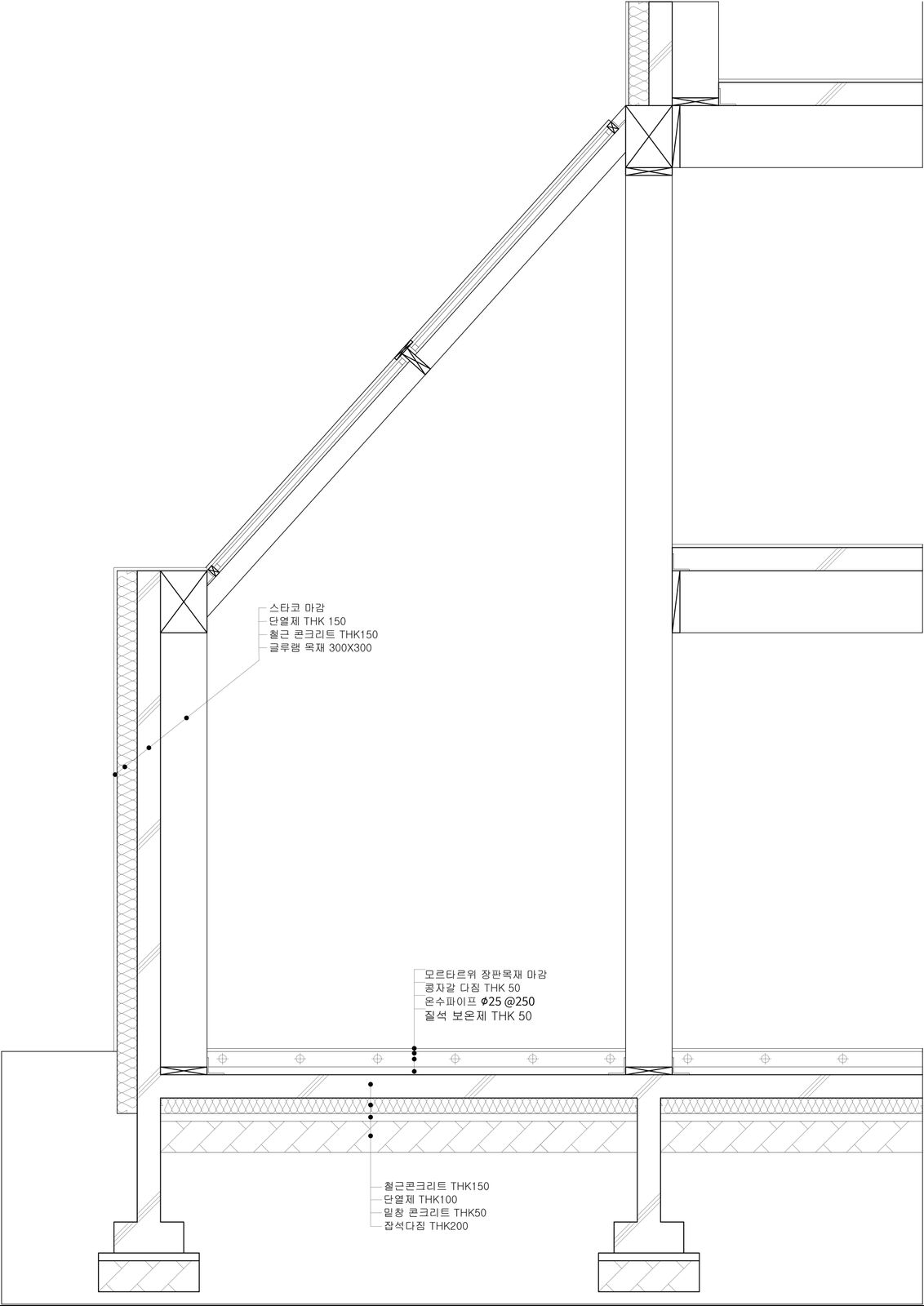 I wanted to feel the space of the timber structure and feel the warmth of the wood, so I wanted to use the wood for the columns, beams and also glass frames.