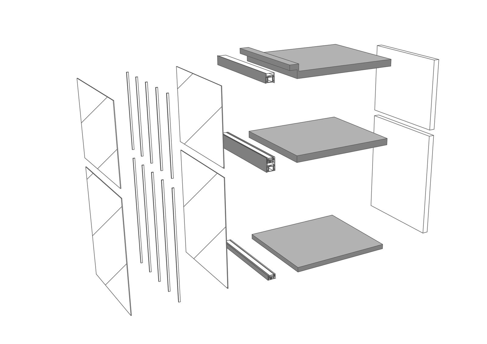 그렇게 저는 유글라스 시스템에서 많이 쓰이듯 슬라브가 있고 시스템 위로 유리가 올라가 시스템을 캡으로 막음으로써 슬라브가 강조되는 것을 참고하여 제 시스템을 만들어보았습니다.