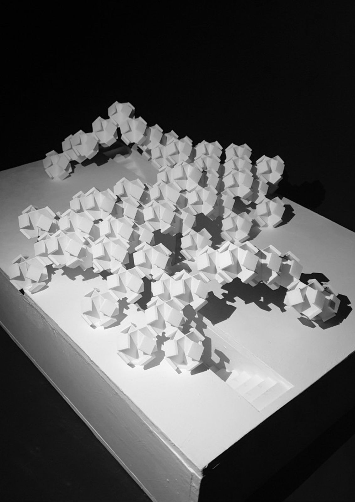 이번에는 기존의 복잡한 유닛을 단순화했다. 1차 유닛의 특징이었던 8개의 마름모와 결합각이 120도인 것을 유지했으며, 위에서 봤을 때 십자형태, 옆에서 봤을 때는 정육각형 모양이 보이게 내부 형태를 바꿔서 단순화했다.