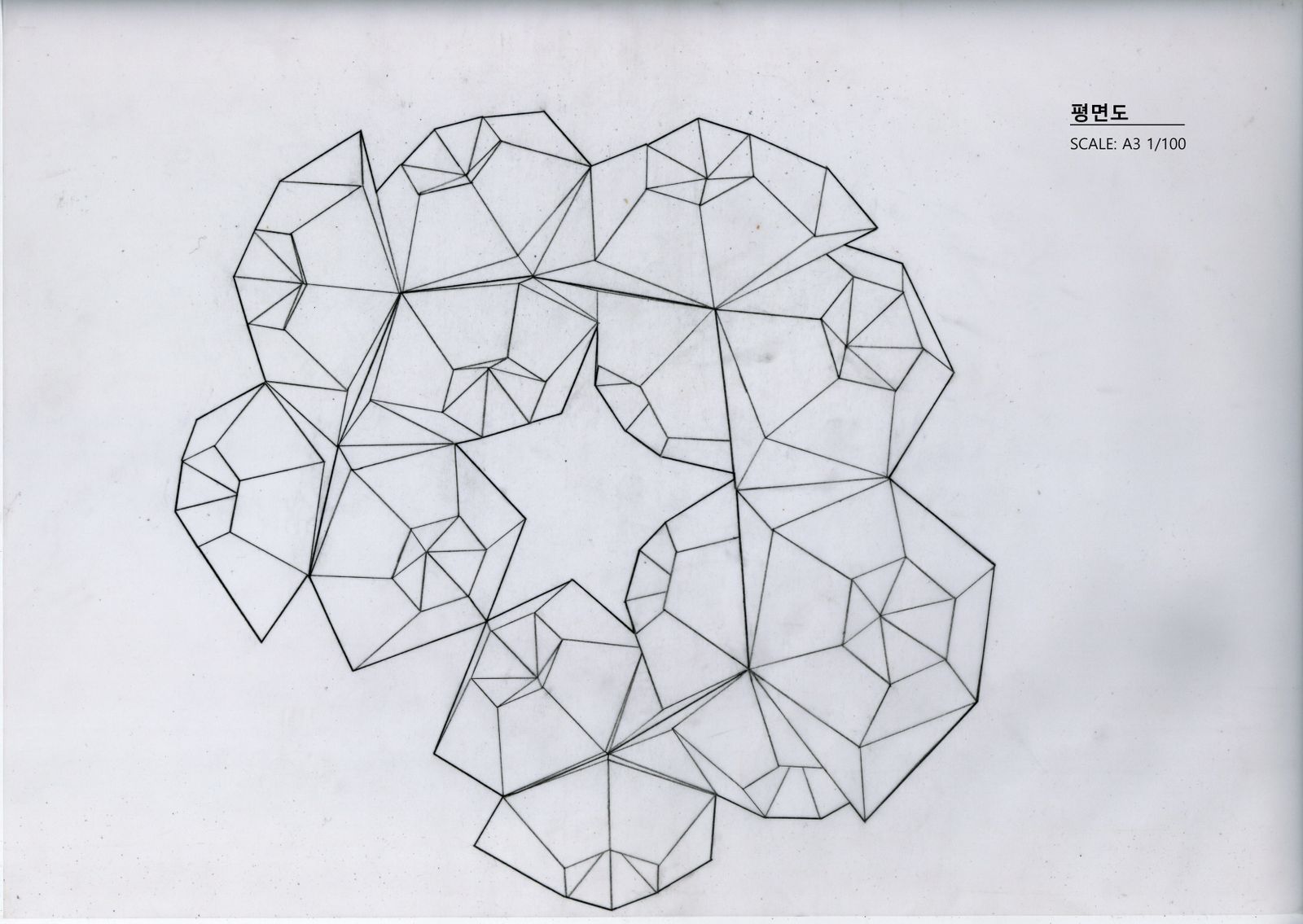 이번 과제는 1차 과제에서 사용했던 단위체를 이용해 파빌리온을 만드는 것이다. 1차 과제에서는 단위체를 90x90 켄트지로 만들었으나, 이번과제에서는 180x180 폼보드로 단위체를 만들었다. 단위체끼리 연결하기 위해 단위체의 뾰족한 부분을 이용했다는 점에서는 1차 과제와 동일하다.