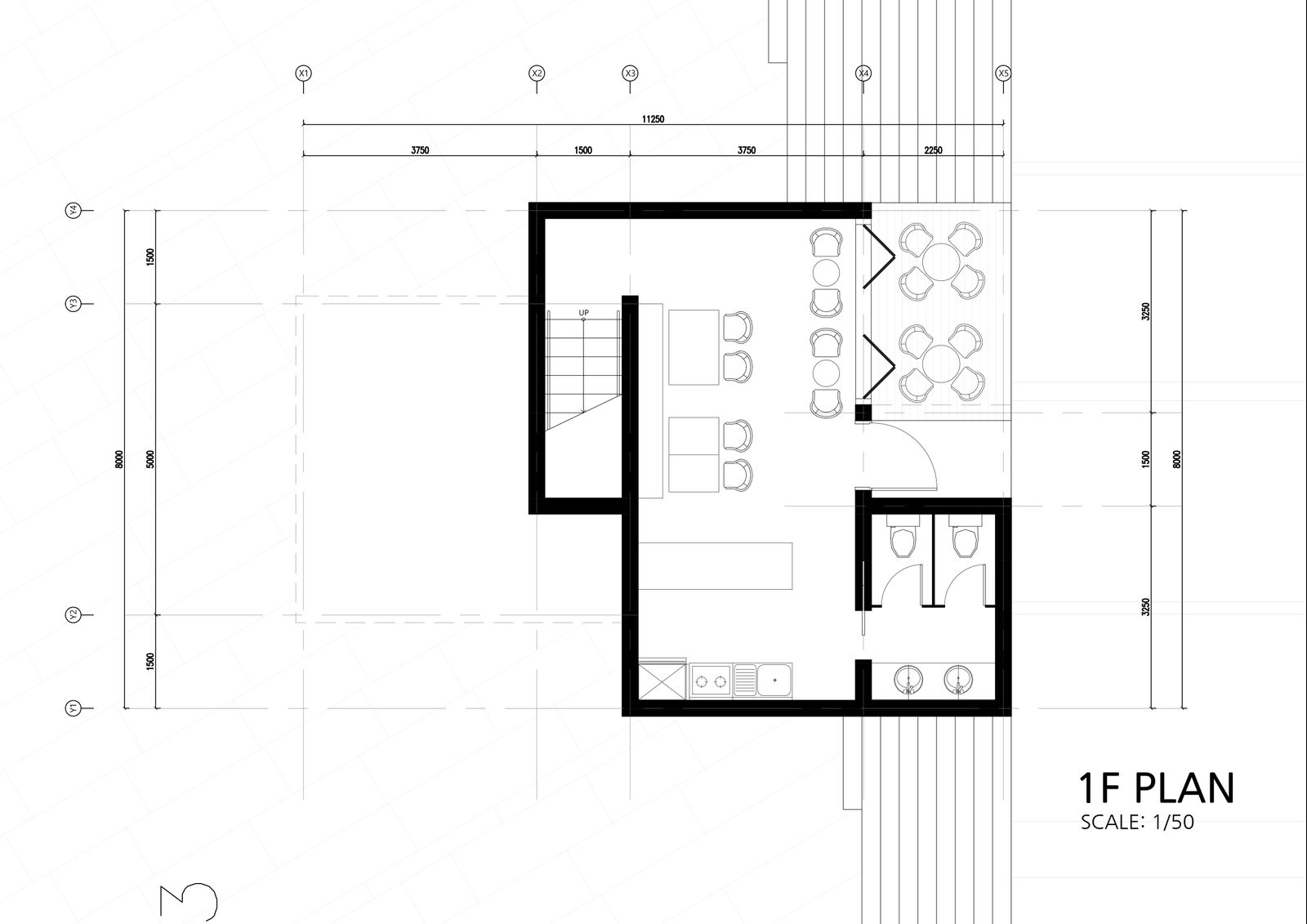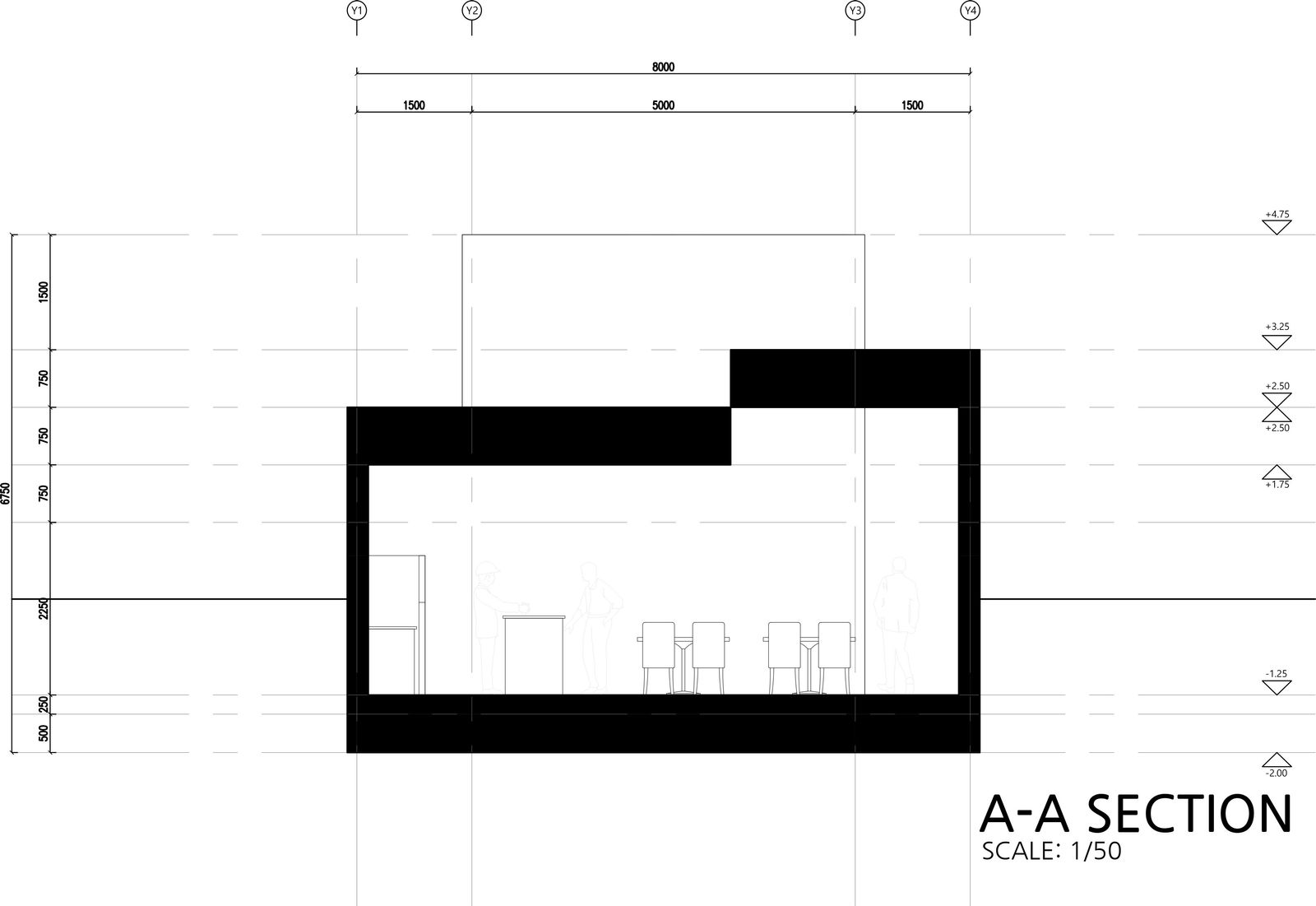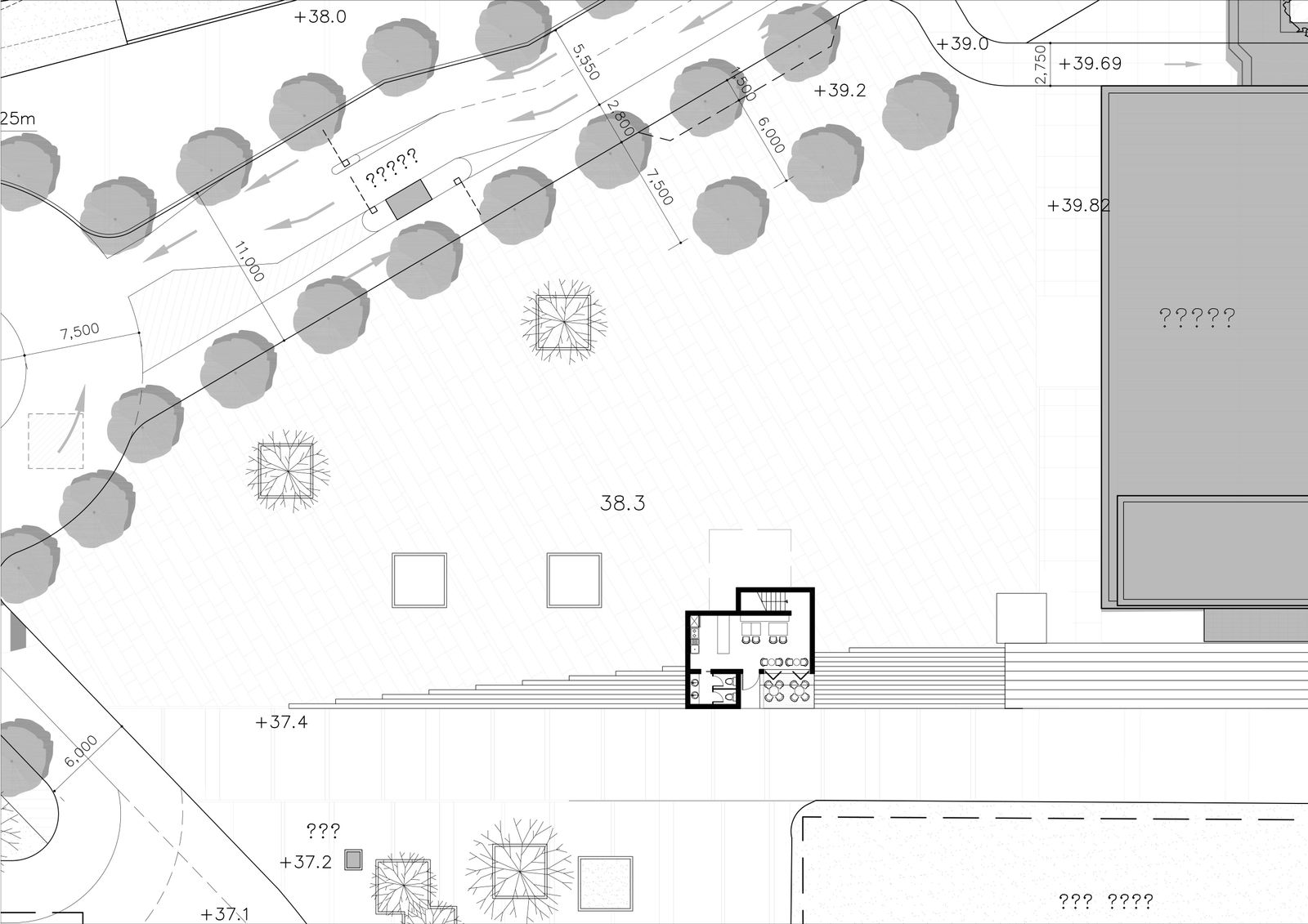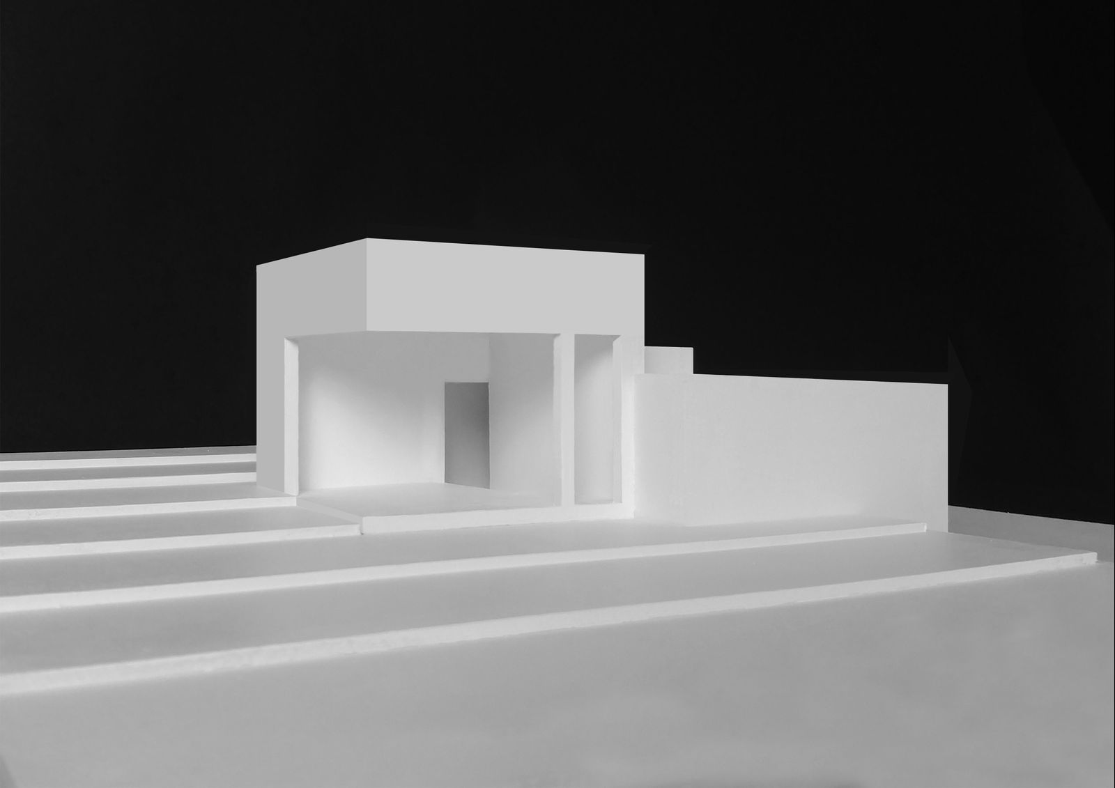 두 번째 과제는 1차 과제를 디벨롭하여 건물을 만들고, 그 건물의 사이트와 프로그램을 정하는 것이었다. 프로그램을 먼저 정하고 사이트를 정했으며, 그에 맞게 외형에 변화를 주었다. 프로그램은 서울시립대학교 기념품 샵과 카페이다. 주 프로그램이 기념품 샵이기 때문에 정문에서 가까우며, 유동인구가 많고, 건물에 맞는 단차가 나는 곳인 전농관 광장의 계단 쪽을 사이트로 정했다. 외형은 1차의 논리에서 크게 벗어나지 않는 범위에서 변형하였는데 큐브 3개가 합쳐져 있다는 것을 명확히 하기 위해 1층 부분의 큐브 한쪽을 깎아 내었다.