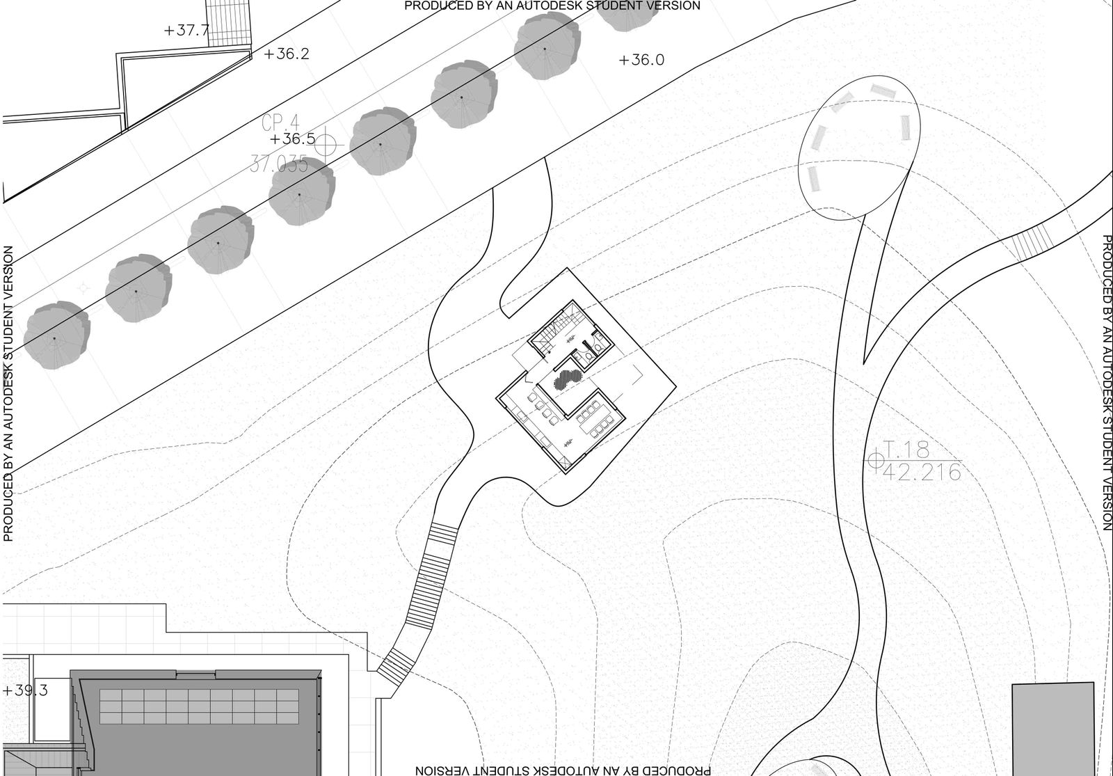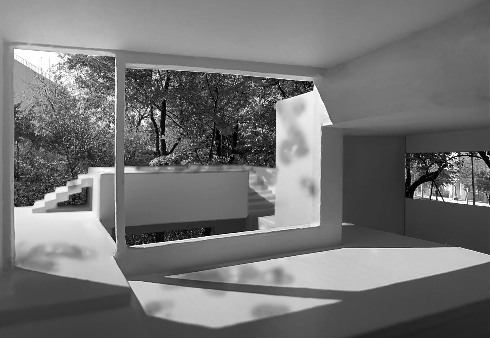 외향은 1차 모델과 큰 차이가 없지만, 기본적인 프로그램인 화장실을 넣기 위해 지상에서 띄어놓았던 부분을 반정도 막게 되었고 결과적으로 더 위요감이 있는 공간을 만들 수 있었다.