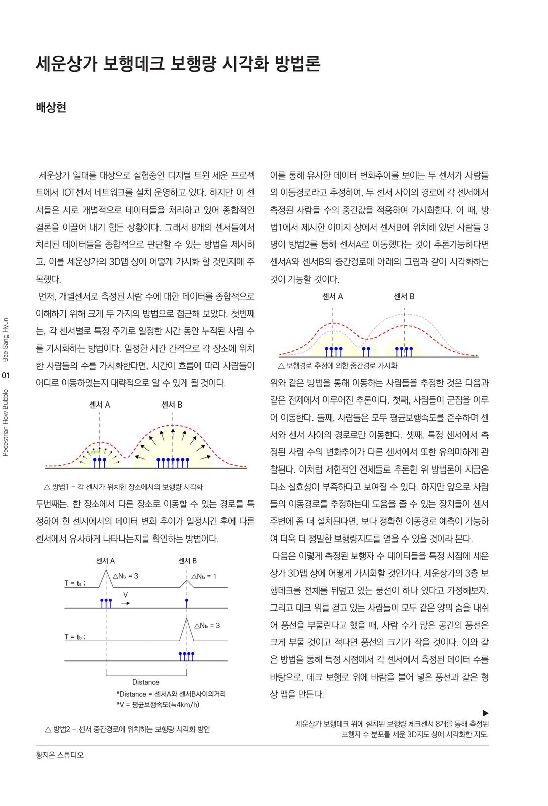 세운상가 디지털세운 프로젝트의 일환으로 설치된 보행데크의 보행량 체크 센서 8개를 이용한 프로젝트.