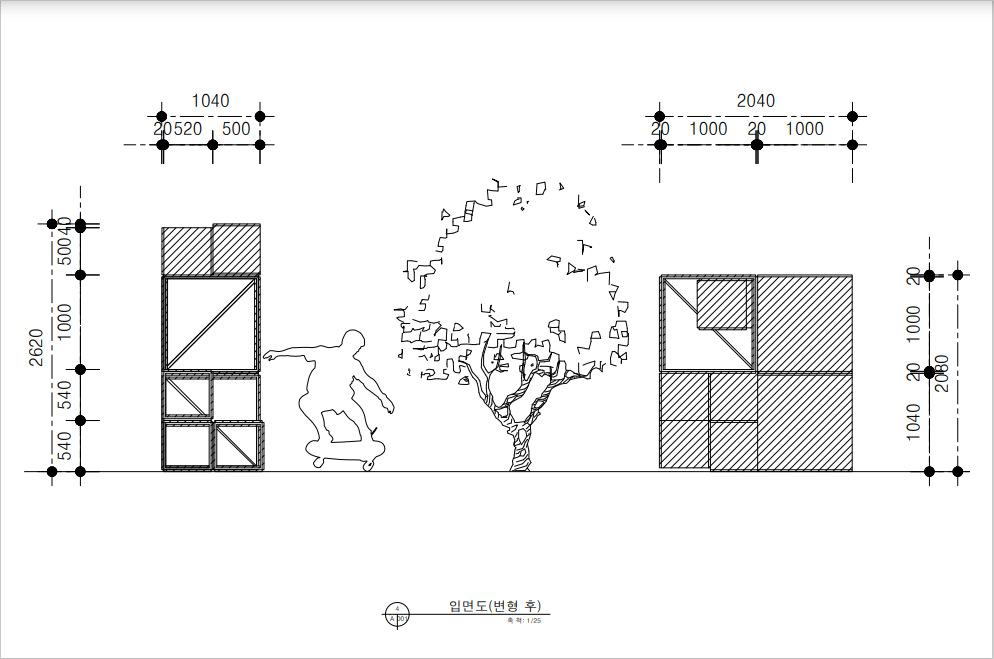 파빌리온이 변형 가능하다고 하더라도 변형할 필요성이 없다면 굳이 변형을 할 일이 없을 것입니다. 저는 파빌리온이 변형을 하면 부피가 최소화될 수 있도록 제작하였습니다. 평소에는 사람들의 여가 공간, 플리마켓, 행사부스, 전시공간 등 다용도로 활용하다가 필요에 따라 변형시켜 파빌리온을 옮기고 싶은 장소로 충분히 이동시킬 수 있습니다.