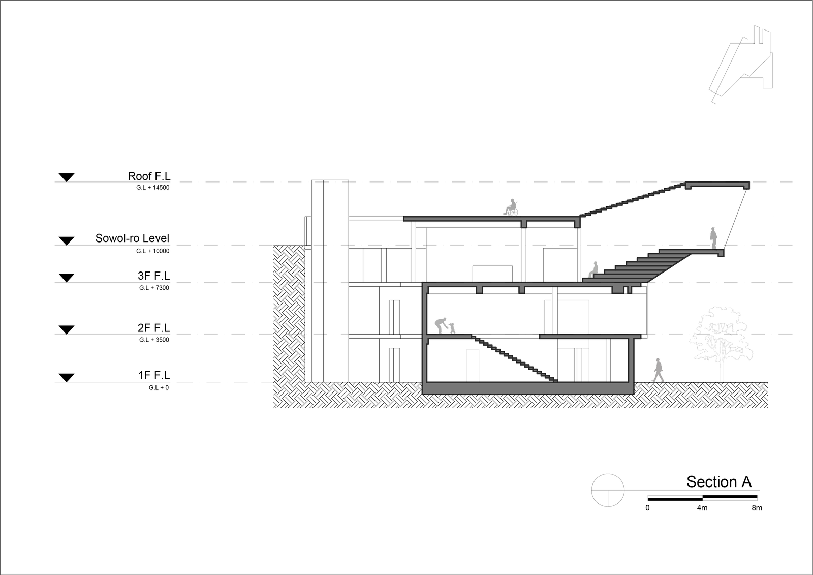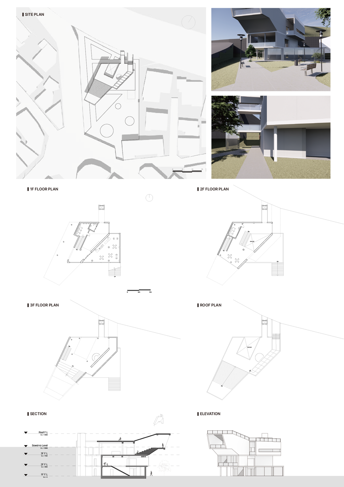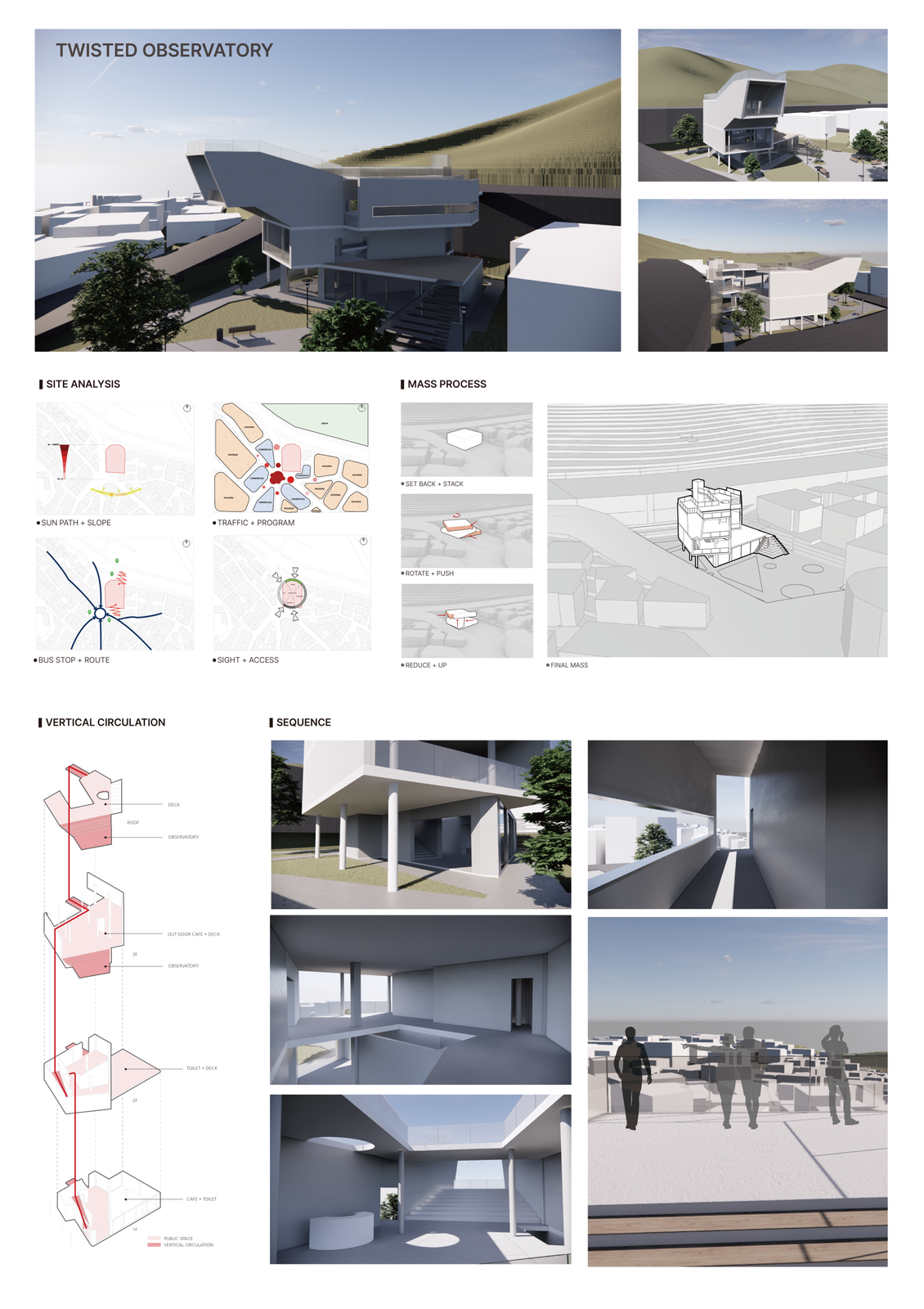 이러한 사이트 분석을 매스 프로세스에 적용하며 전망대 디자인 개념을 확장했다. 소월로와 해방촌 오거리의 통로이자 각 층 레벨마다 각각의 해방촌의 모습을 경험하도록 하는 전망대를 디자인했다.