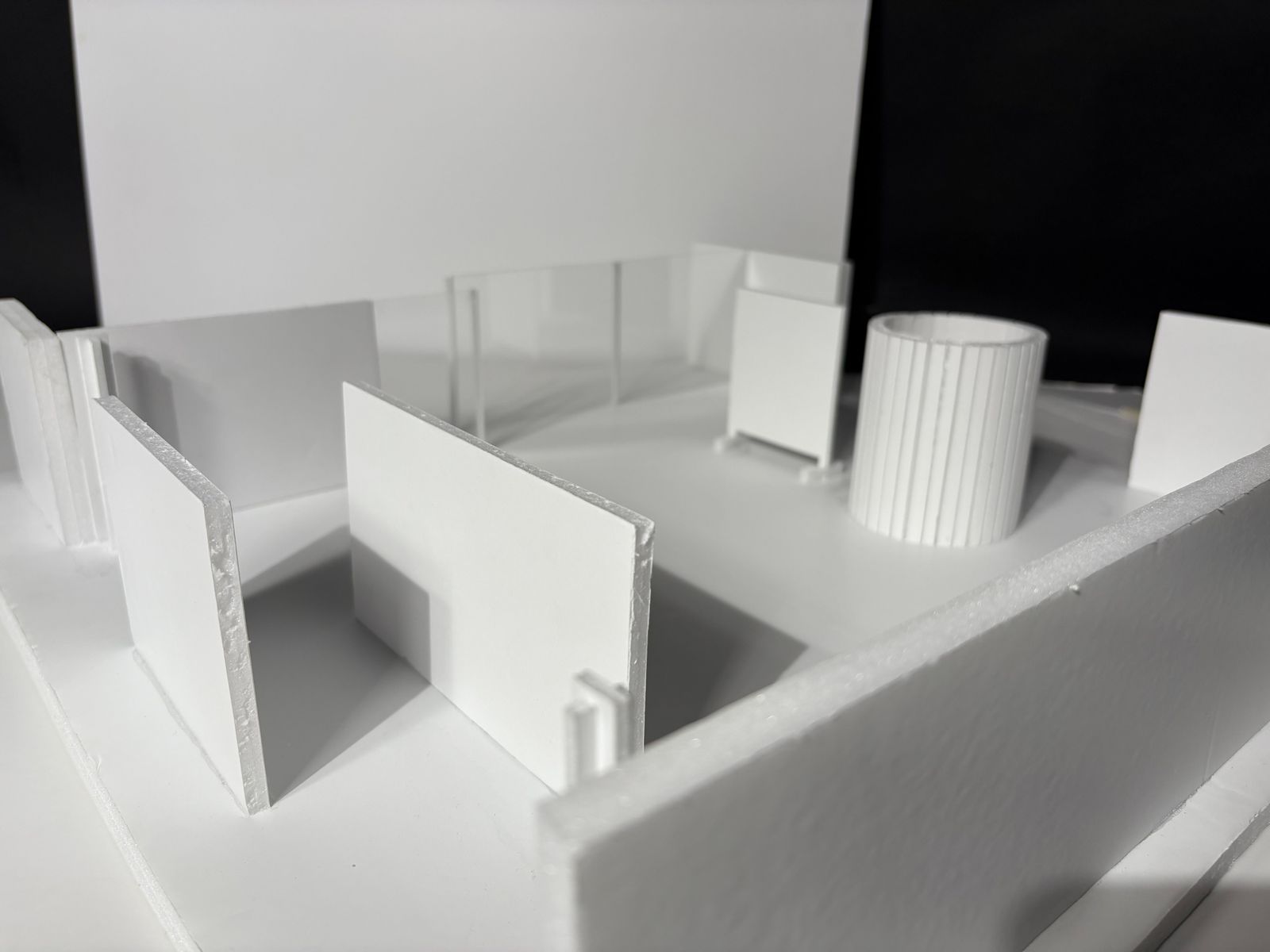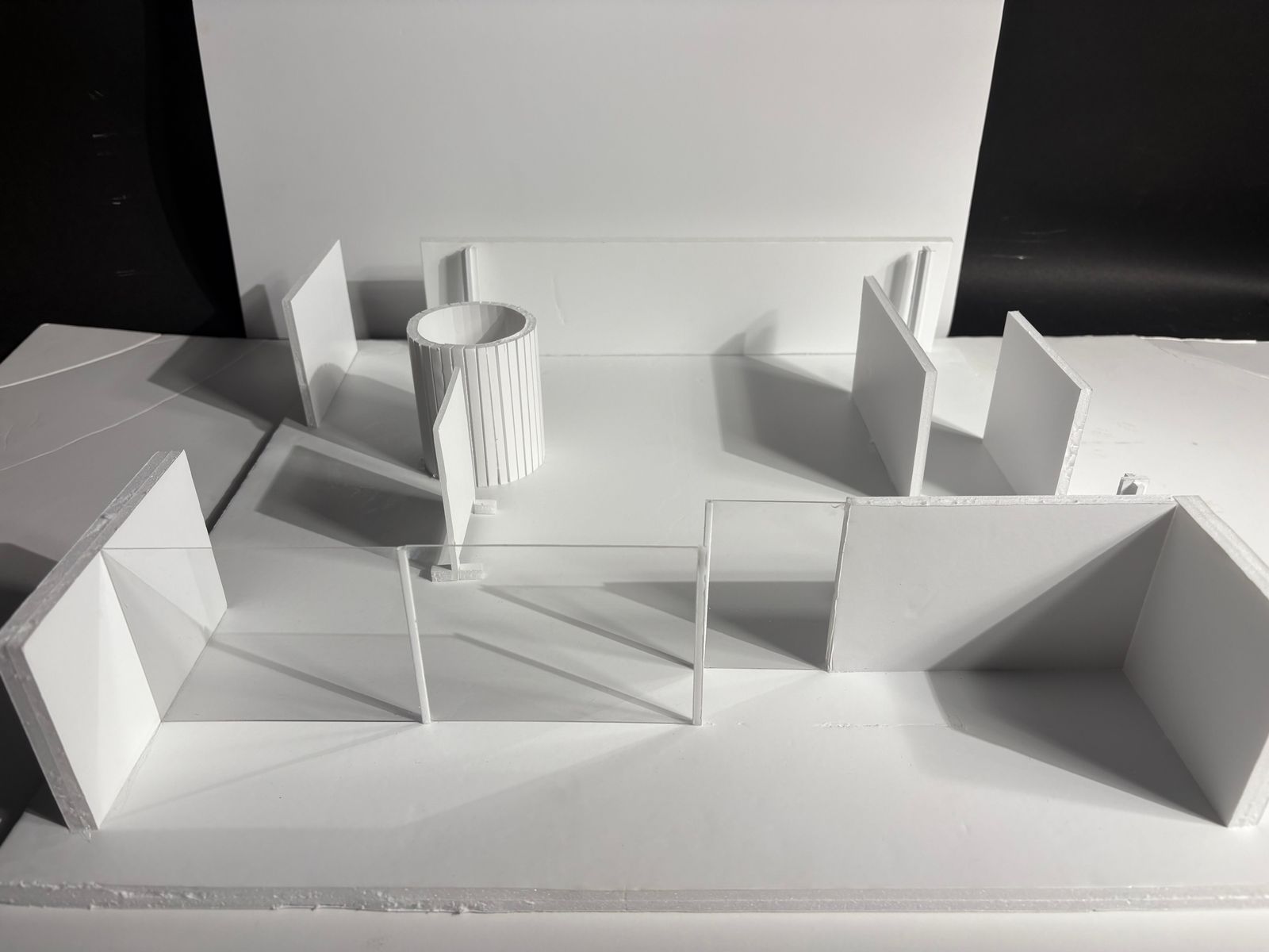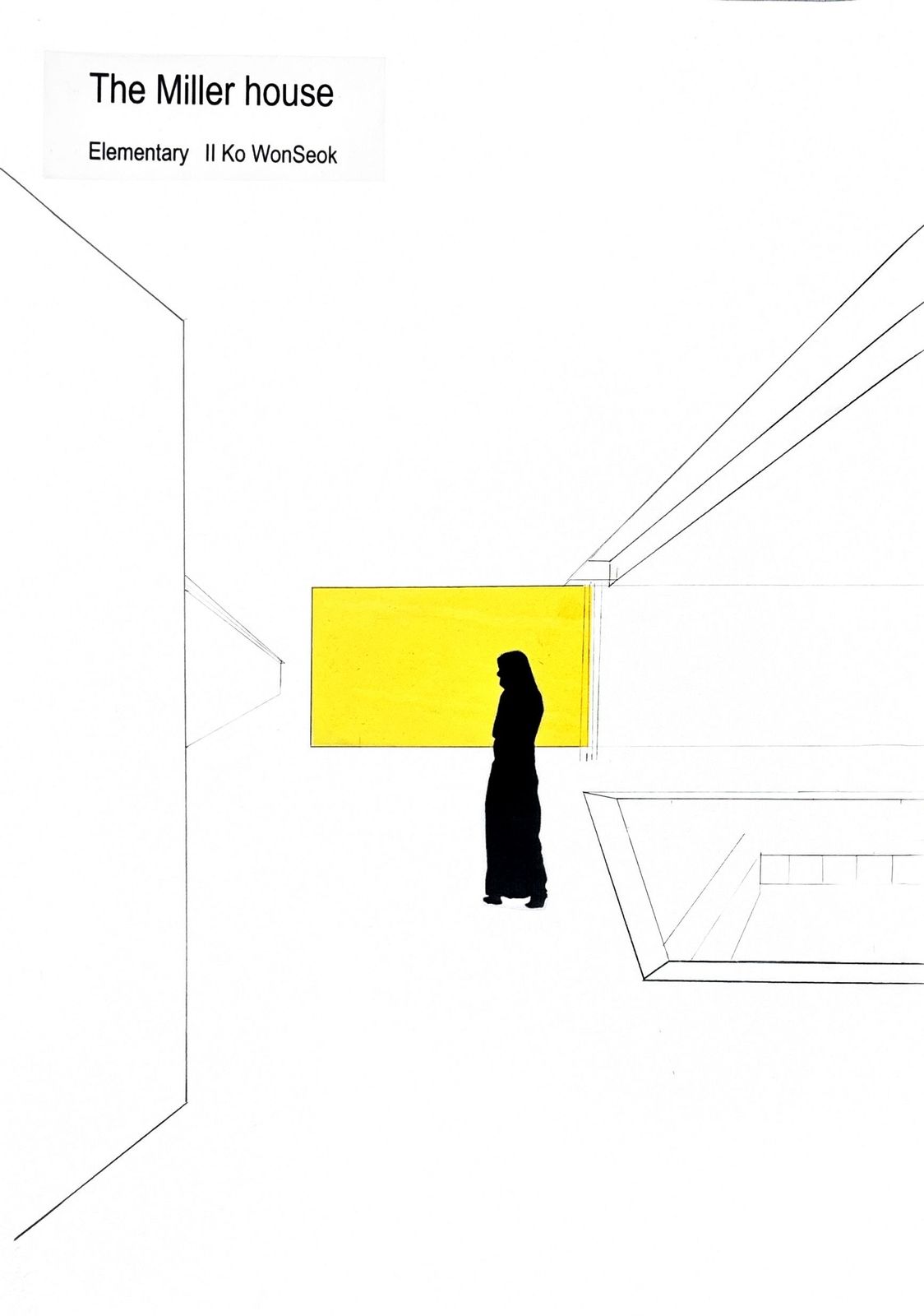 Miller house는 천창, 벽, 프로그램, 그리고 시선을 조정하는 벽으로 레이어를 나눌 수 있다.