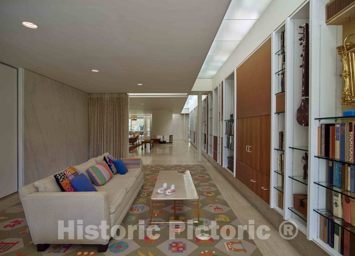 에로 사리넨이 이 집의 라운지를 `집 안의 광장‘이라고 표현한데는 단순히 공간의 스케일에 있지 않다. Miller house는 외부와 연결이 특징이다. 하지만 집의 4개의 사이트(안방, 자녀방,주방,식모방)에서 라운지로 진입하는 과정에서의 시선은 곧바로 외부와 연결되지 않는다. 시선은 벽과 한번 연결된 후, 라운지에 도달한 후에야 외부를 마주한다.