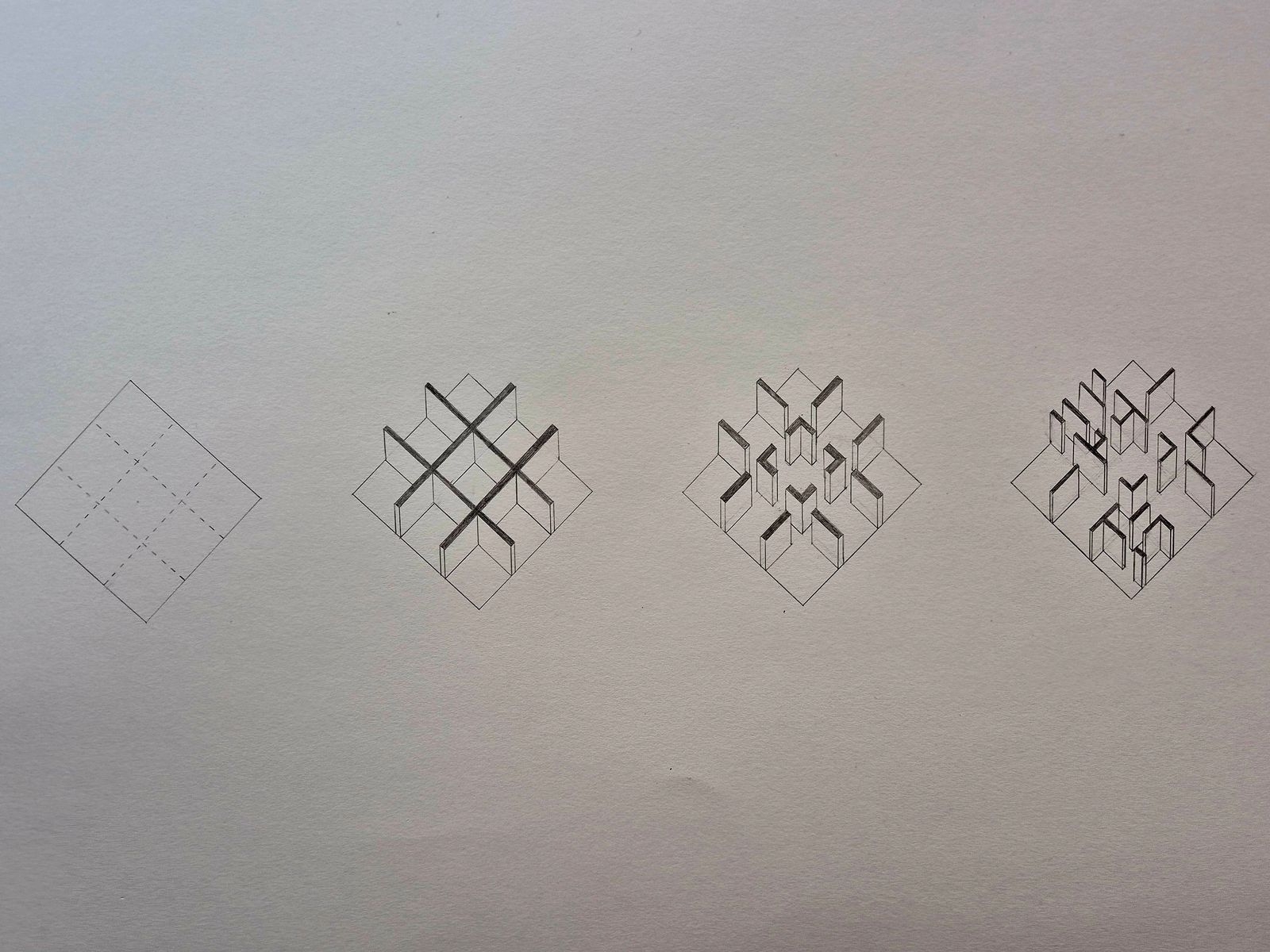 처음 이 집을 보았을 때 어떻게 접근할 지 고민하던 중, 먼저 이 아홉칸이라는 아이디어의 발전과정을 추적해보자라는 생각으로 이에 대한 다이어그램을 그려보기로 하였다.