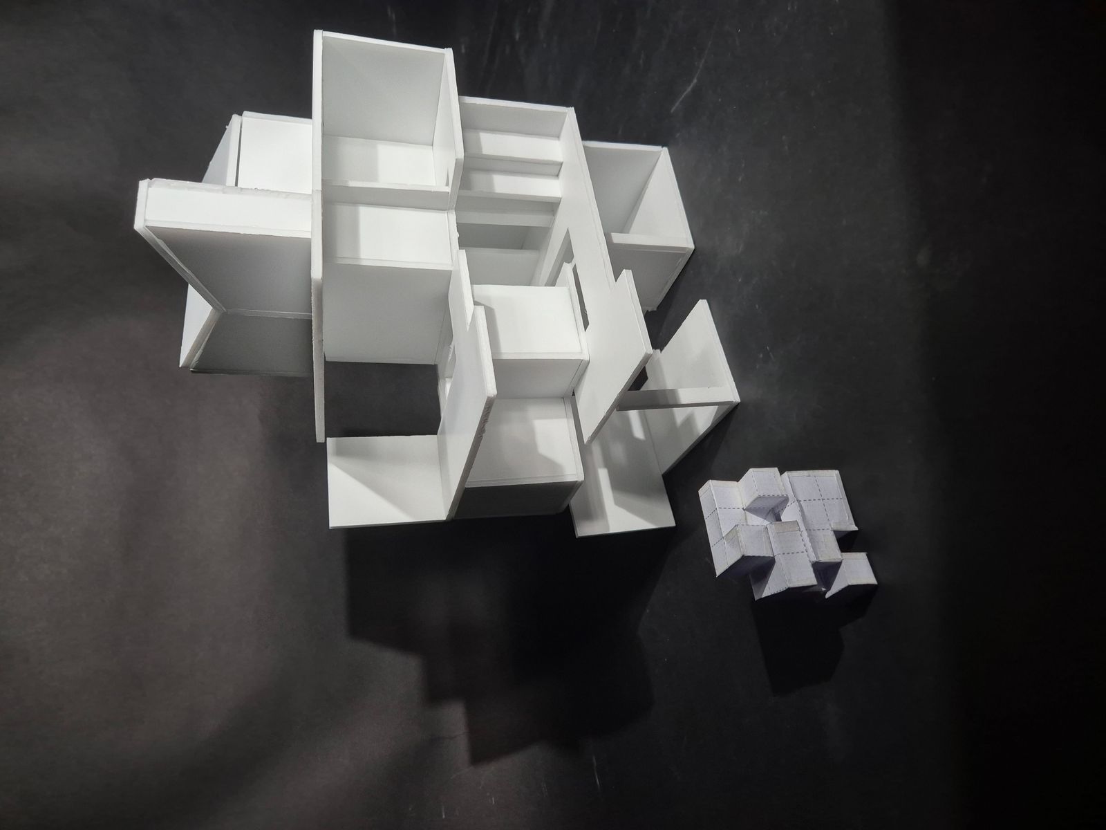 얽혀있는 공간이 블록과 유사해보여서 블록이라는 단순하고 추상적인 입체 구조를 활용하여 생활구역을 어떻게 쪼갤지 고민해 보았을거 같아서 이 집에서 각 세대별 거주공간을 추상화시켜서 이런 모양의 블록을 만들어 보았다.