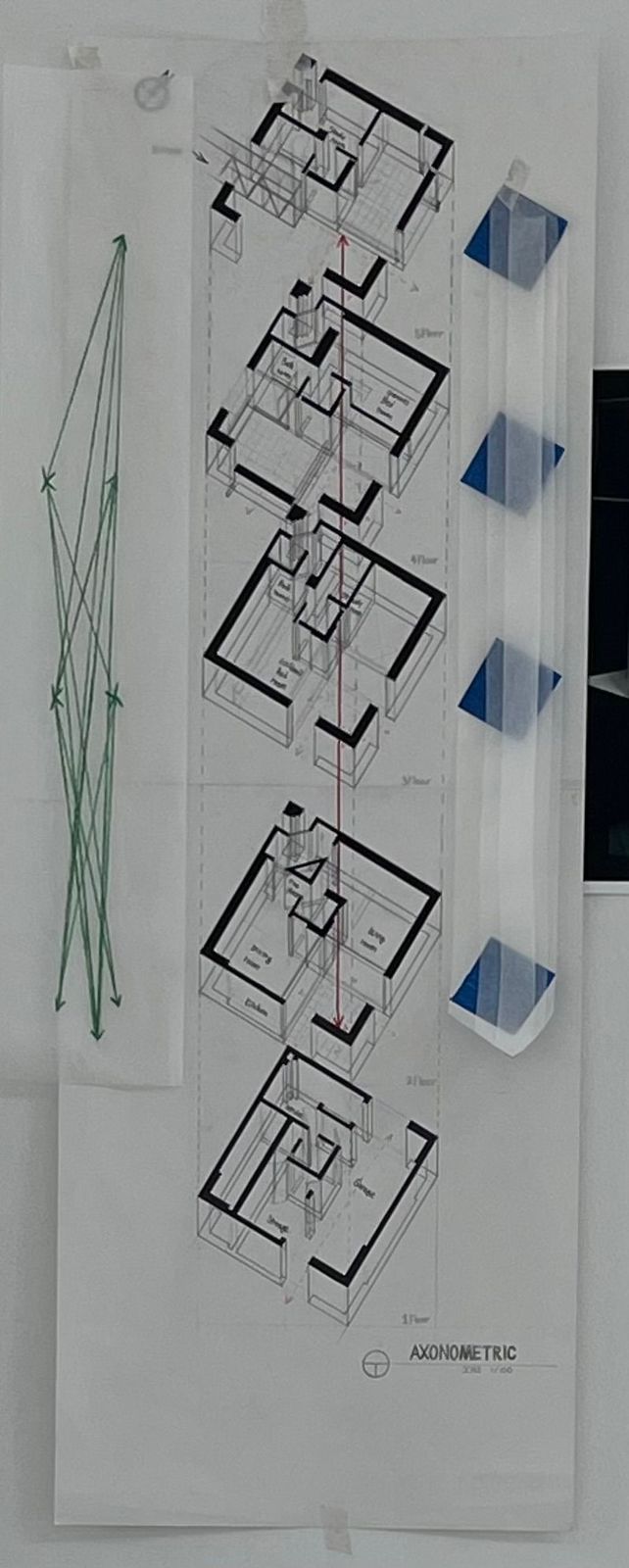 그리고 다른 층들끼리 일어나는 시선의 교차와 로지아의 레이어를 추가한 엑소노매트릭도 그려서 한 번에 이해하기 쉽도록 했다.