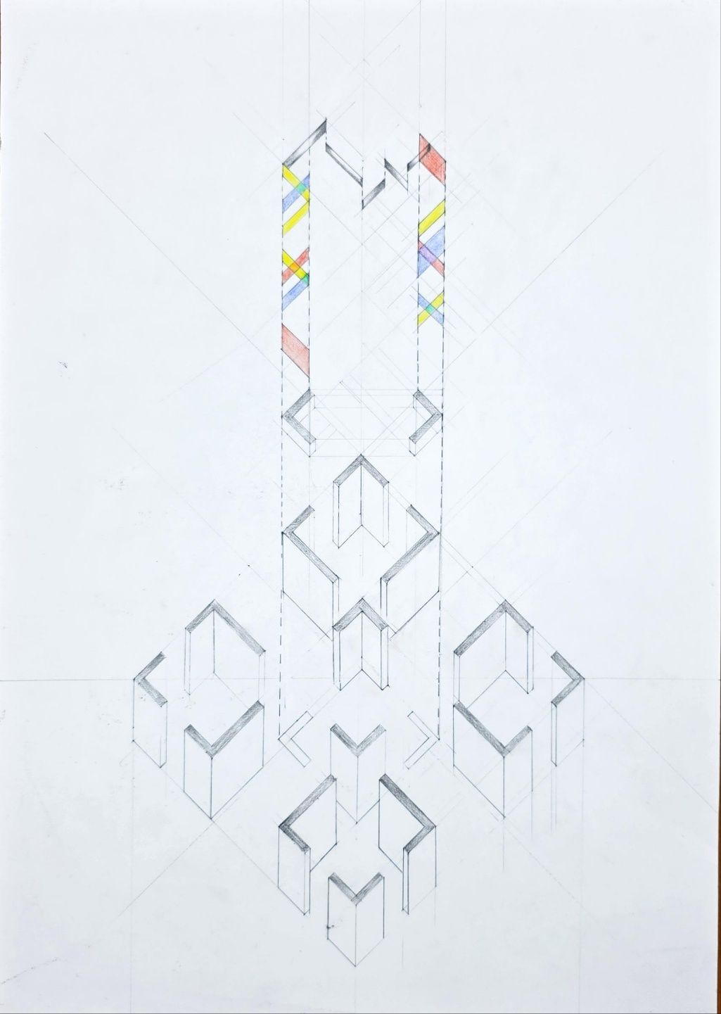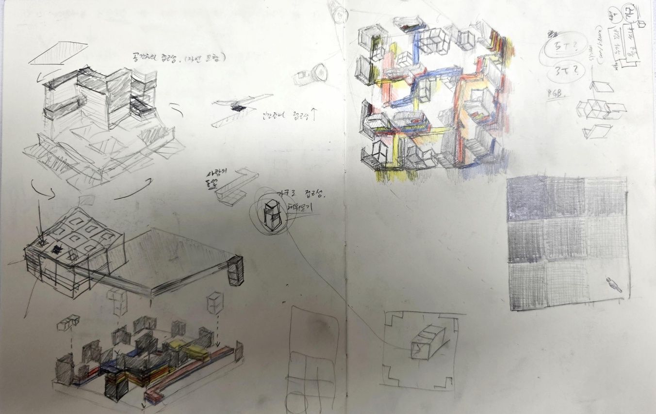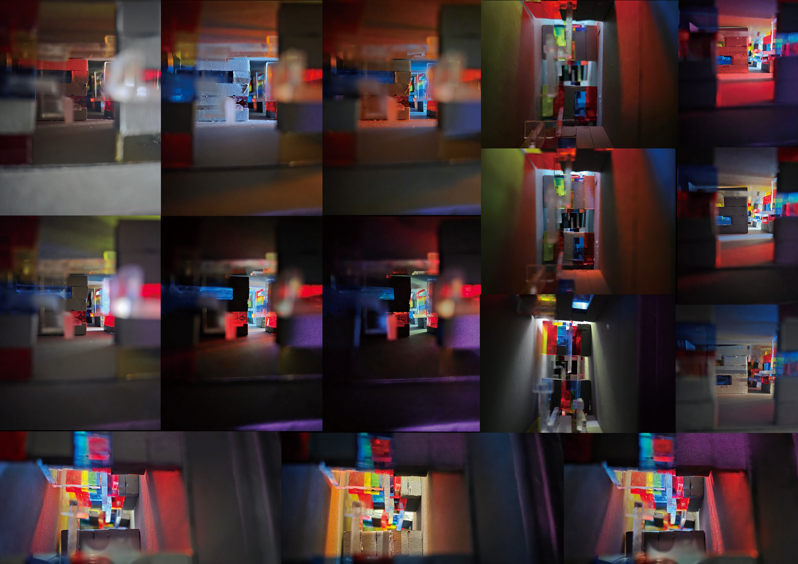 이는 각 방의 상황에 따른 기억과 행동의 차등을 나타내며, 벽을 뚫고 아크릴 너머 빛이 보임으로써 시선의 열림을, 투명아크릴이 다양한 방향으로 뻗어나가는 동시에 다양한 색을 입으며 행동의 열림을 표현한다.