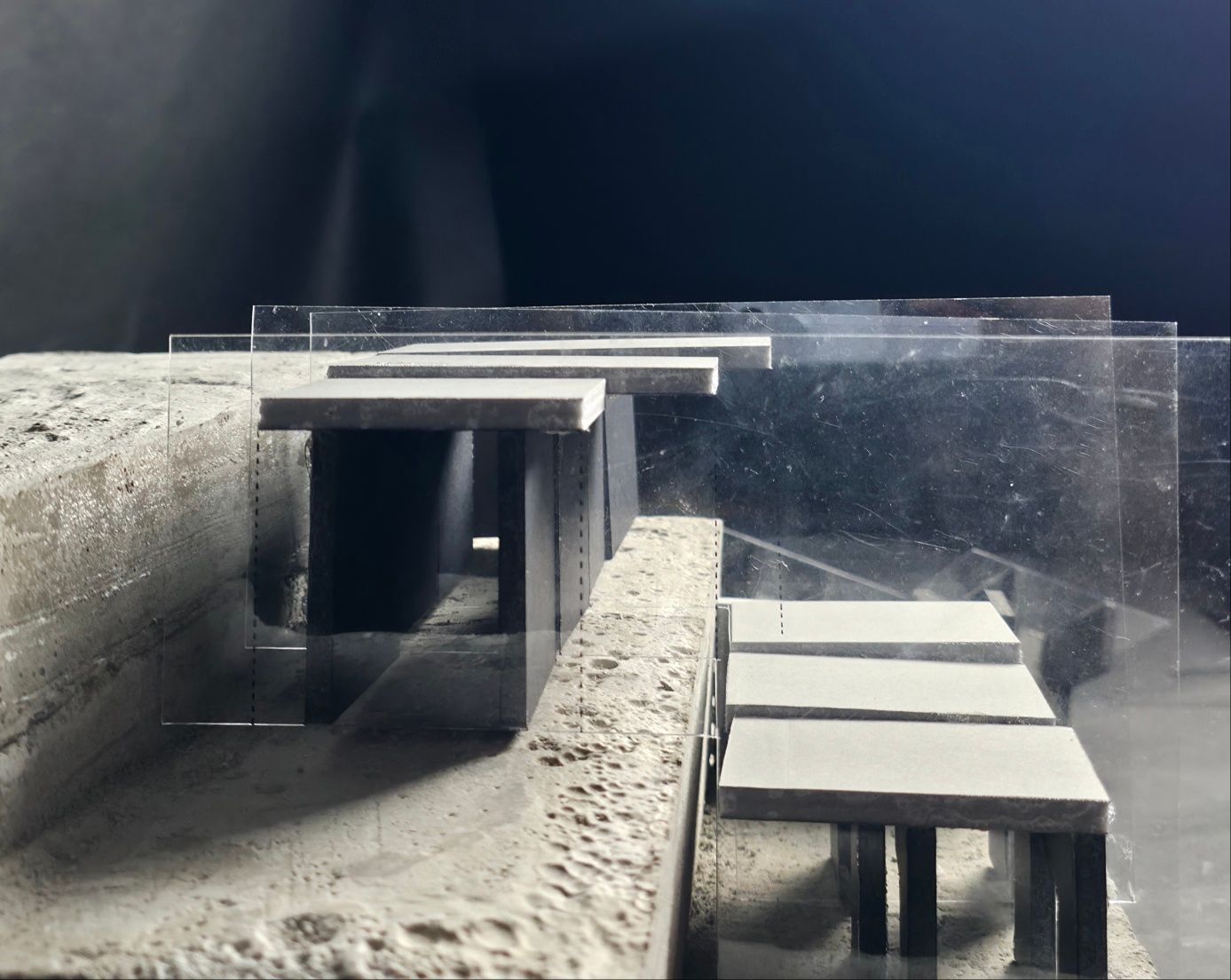 개념모델은 콘크리트로 작업했으며, 길이에 따라 달라지는 시선을 표현하기 위해 4가지의 섹션으로 나누어서 표현했다.