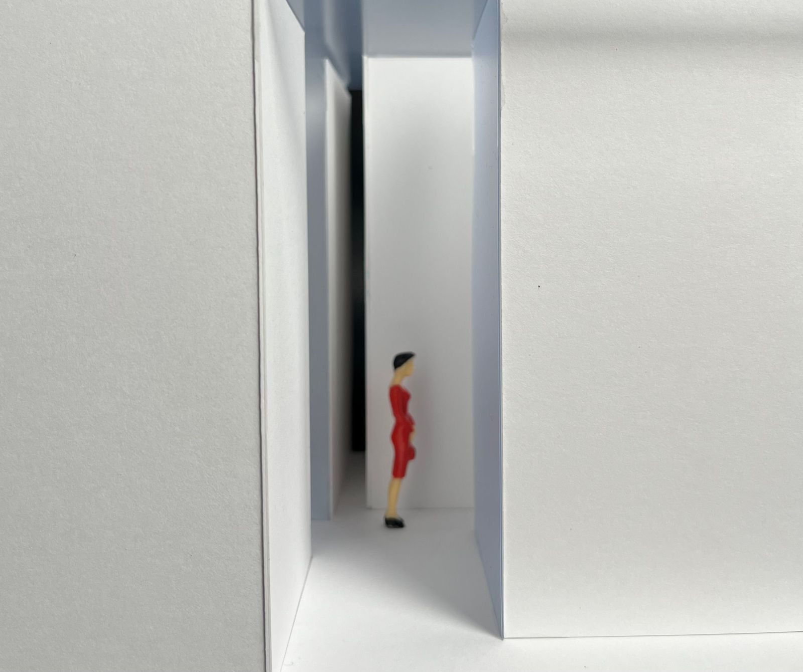 골목 공간의 특징은 무엇인가? 난 골목을 제한된 시야의 공간이라 생각한다. 한 방향의 시점으로는 벽에 가로막혀 공간을 파악할 수 없지만, 계속 이동하며 시점을 변환하고, 계속 나아가고, 시점을 변환하는 것을 반복한다. 또 이 과정에서 주변을 관찰하게 되고, 공간에 녹아들어 있는 다양한 삶의 모습을 관찰하게 된다. 또 골목이란 공간에서, 사람들은 ‘마주침’을 경험한다. 계획적이고 주기적인 만남과는 다른 특별한 관계가 형성되는 것이다. 이를 바탕으로 최종 모형을 제작하였다.