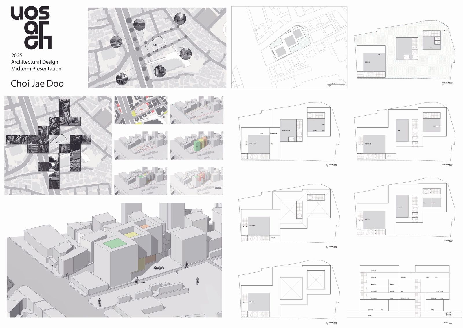 선례조사와 사이트 조사를 바탕으로 만든 매스모형과 조닝평면이다