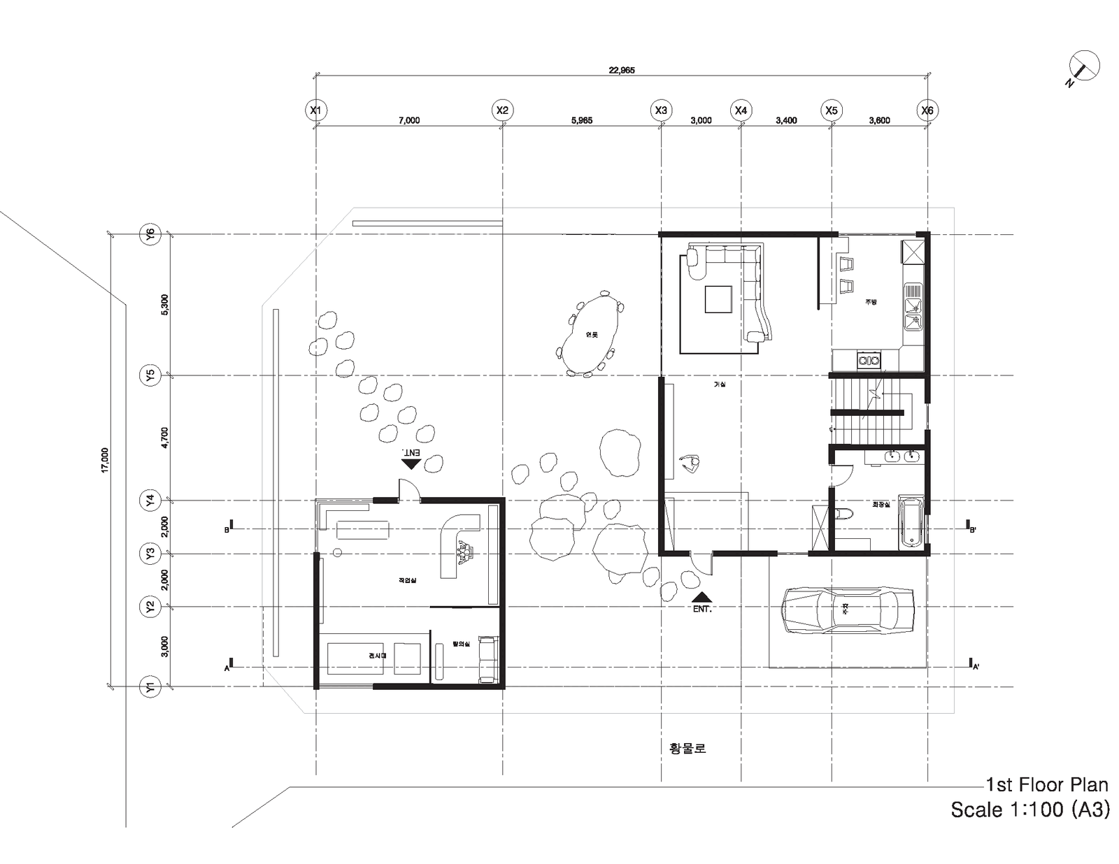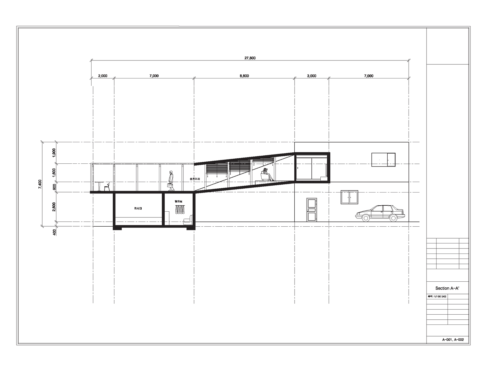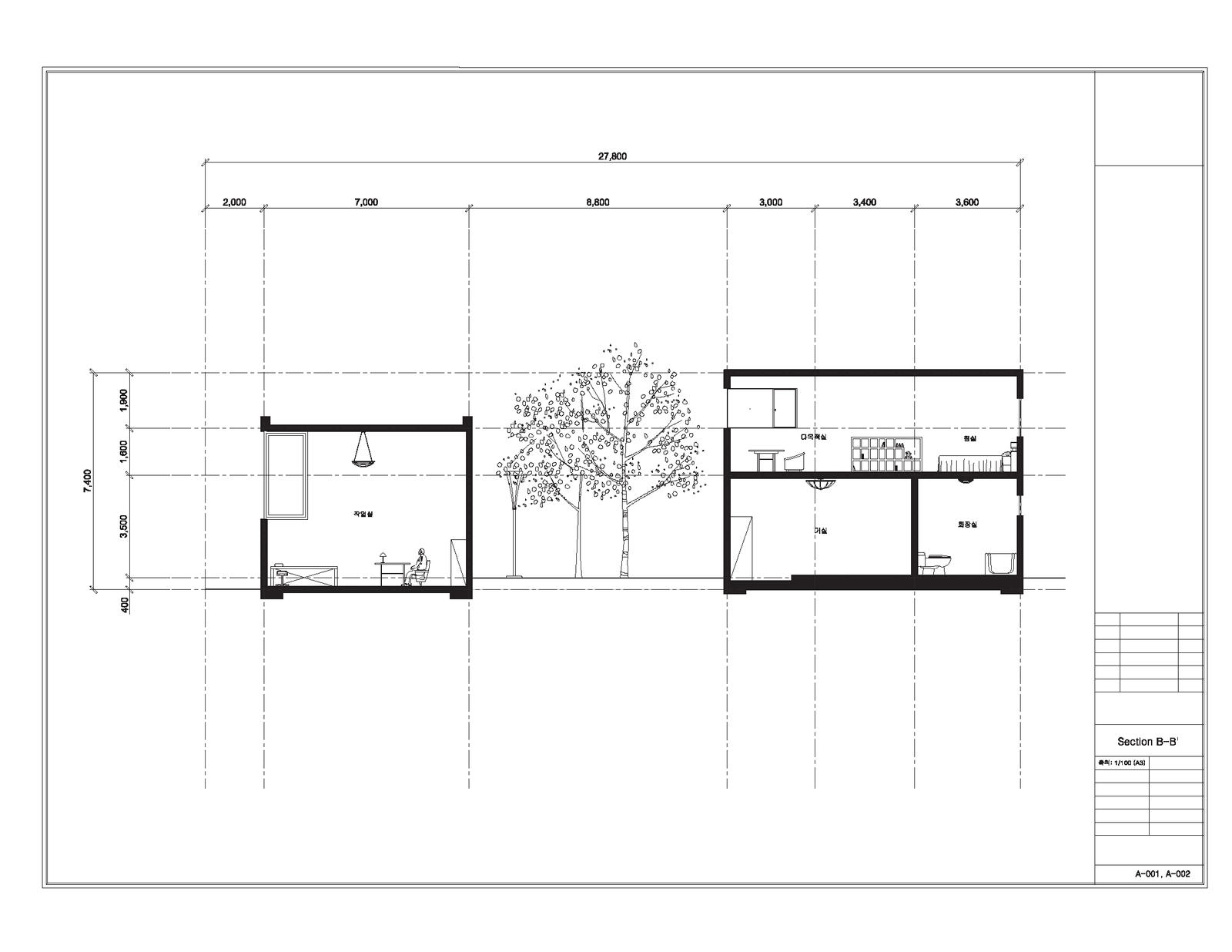사람들은 자산의 일상의 흔적들 중에서 소중하거나 본인에게 의미가 있는 것들을 몸에 남기고싶어한다. 그리고 타투이스트가 그 작업을 실행해준다. 이런 관점에서 나는 타투이스트가 사람들의 일상을 관찰할 수 있는 공간이 생겼으면 좋겠다고 생각했다. 또한 직업 특성상 거주지와 작업실이 별개로 분리되어야 한다고 느꼈다. Site B를 십자가 모양으로 그어 네 공간으로 나누었을 때. 사람들을 관찰할 수 있는 공간 ('생츄어리'라고 부르겠다)은 아마 공원과 가까운 쪽이 될 것이고, 사생활이 대부분인 거주지는 가장 안쪽자리가 될 것이다. 그러다 작업실과 생츄어리가 겹칠 것 같아서 작업실의 층고를 높여 생츄어리에서 공원도 볼 수 있고 자신의 작업실도 관찰할 수 있게 만들어보았다.
