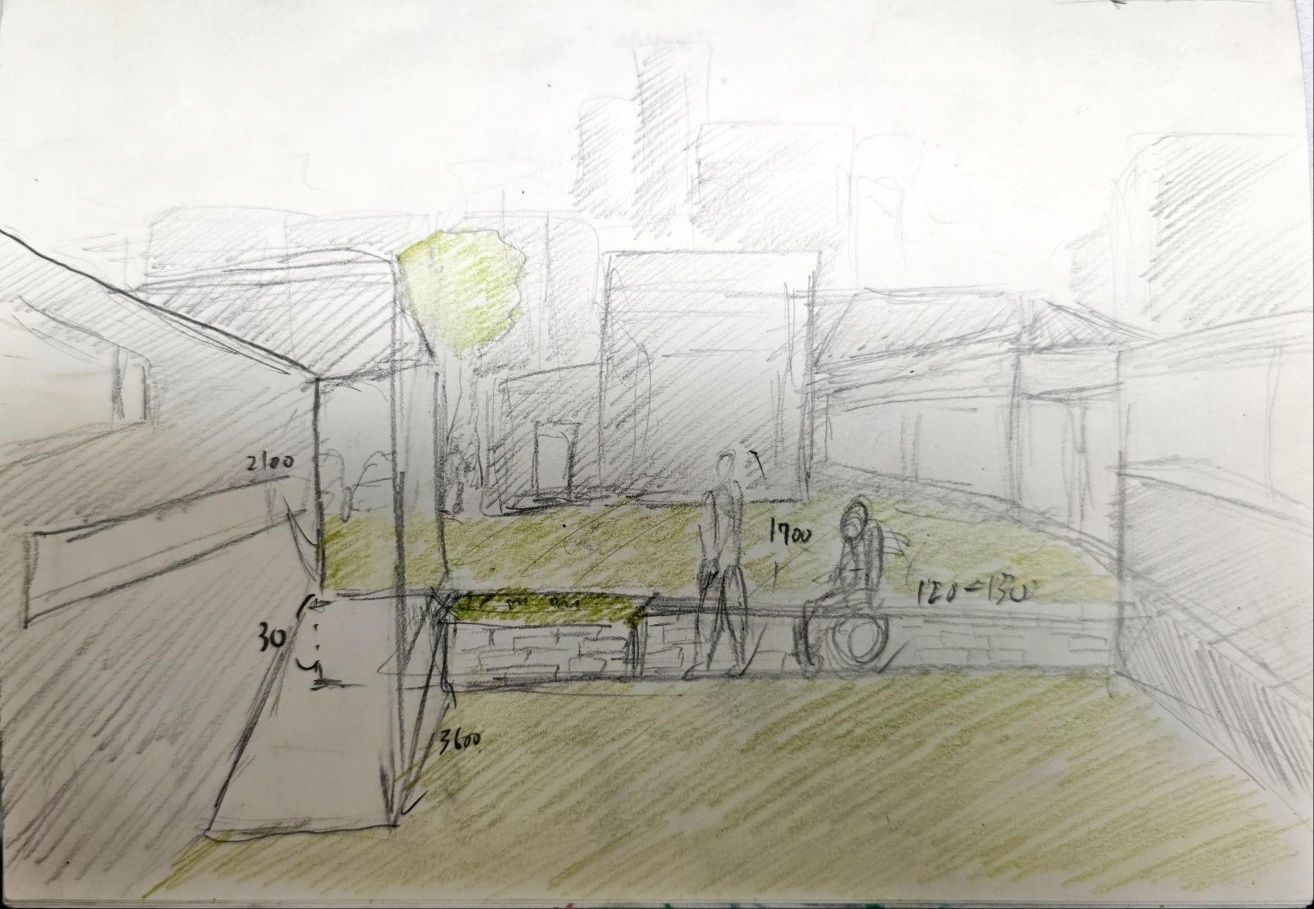 다음으로 생각한 것은 정주 인원이었다. 간데메 공원 일대는 내가 어렸을 적 할머니와 함께 살았던 동네와 분위기가 비슷해서 할머니, 할아버지, 손자가 사는 주택으로 설정하려 했다. 실제로 노인들이 많이 보이기도 했다.