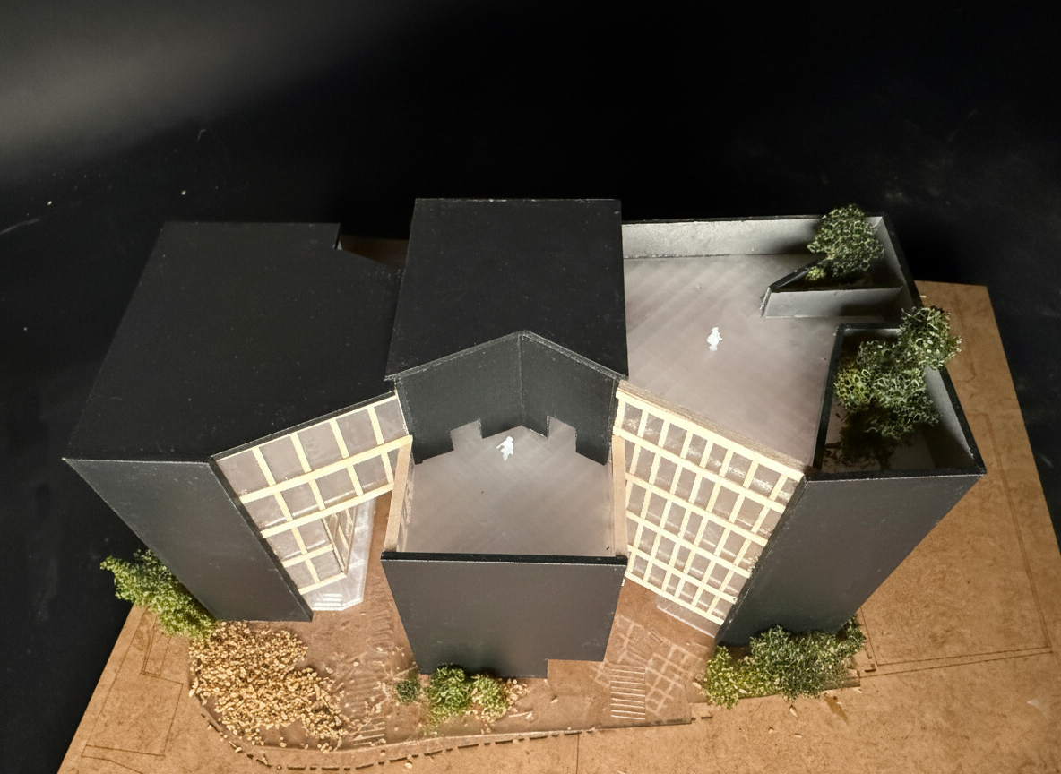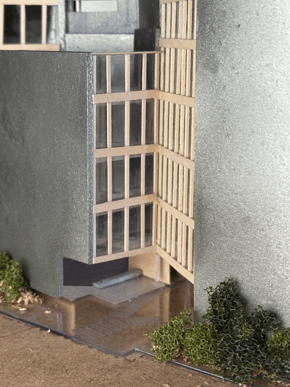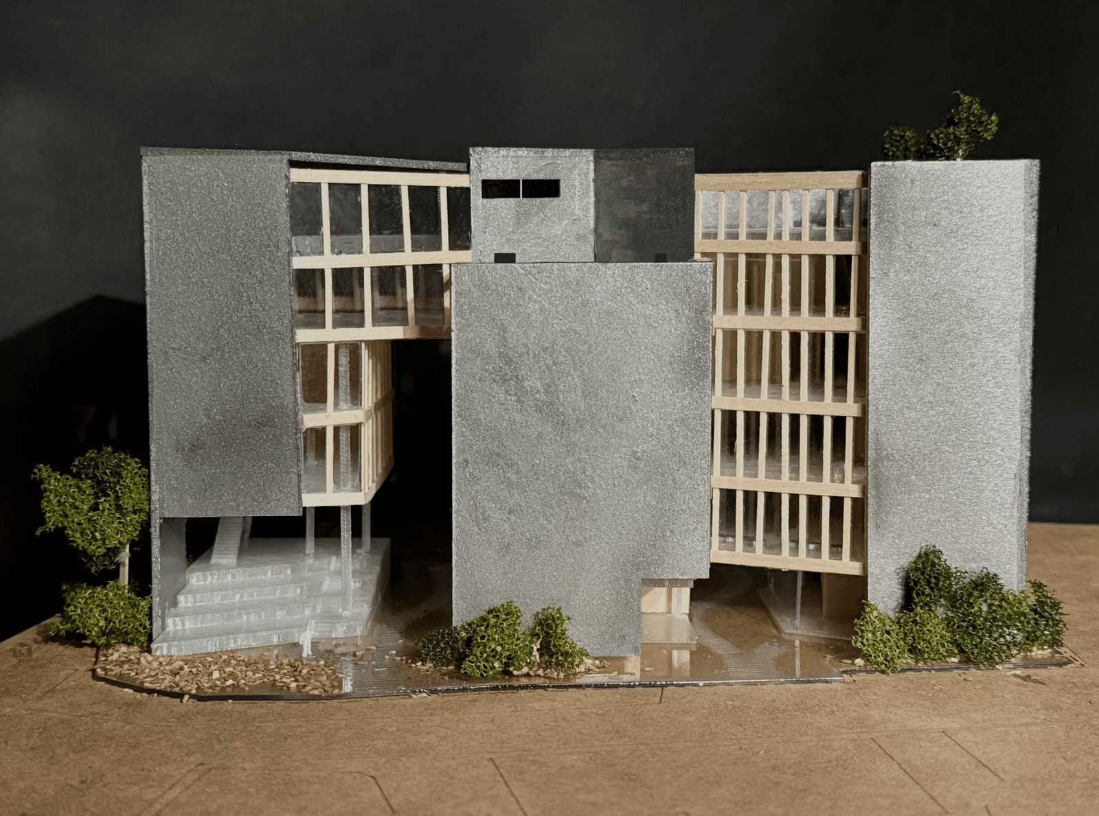 건축 디자인의 핵심은 '틈새의 휴식'이다. 단순한 공공 시설을 넘어, 주민들이 삶의 에너지를 얻고 일상으로 나아갈 수 있도록 돕는 건물을 목표로 한다. 틈을 만들기 위해 매스에 틈새를 만들어 이용하기로 했다. '틈'은 매스들이 만나고 떨어져 나가 생겨나는 빈 공간으로 , 이 공간은 주민들에게 휴식을 제공하는 공간으로 기능한다. 매스는 콘크리트로 이루어져 안정감을 주고 , 그 열린 틈 사이로 빛과 공기가 들어오며 무거운 느낌을 덜어내고 틈 사이로 열린 시야를 확보한다.