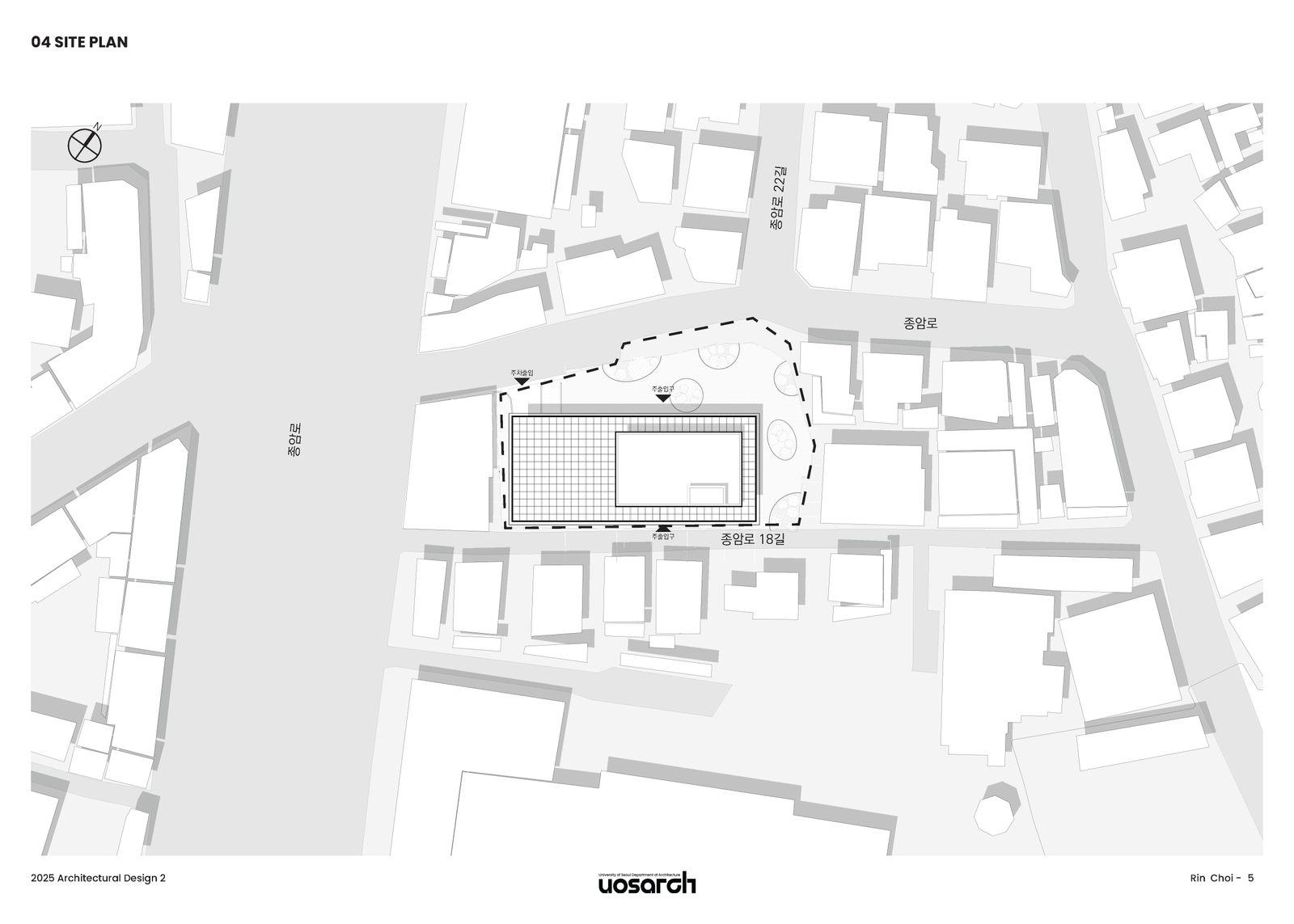 차량 출입은 교통 흐름을 고려하여 종암대로에서 진입 즉시 주차장으로 연결되도록 선정했다. 보행자의 주출입구는 종암동 18길, 종암로, 종암로 22길 등 다양한 방향에서 접근이 가능하도록 열어두어 지역 주민 누구나 쉽게 찾아올 수 있도록 했다.