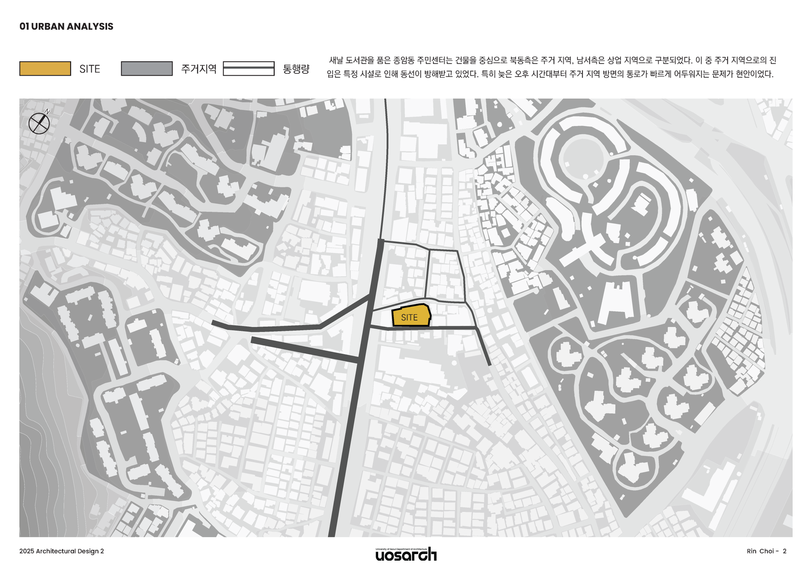 따라서 저는 이 프로젝트가 단순히 주민센터와 도서관이라는 기능을 담는 그릇을 넘어, 어두운 골목을 밝히고 약해진 지역 간의 연결성을 다시 묶어주는 매개체가 되어야 한다고 판단했다.