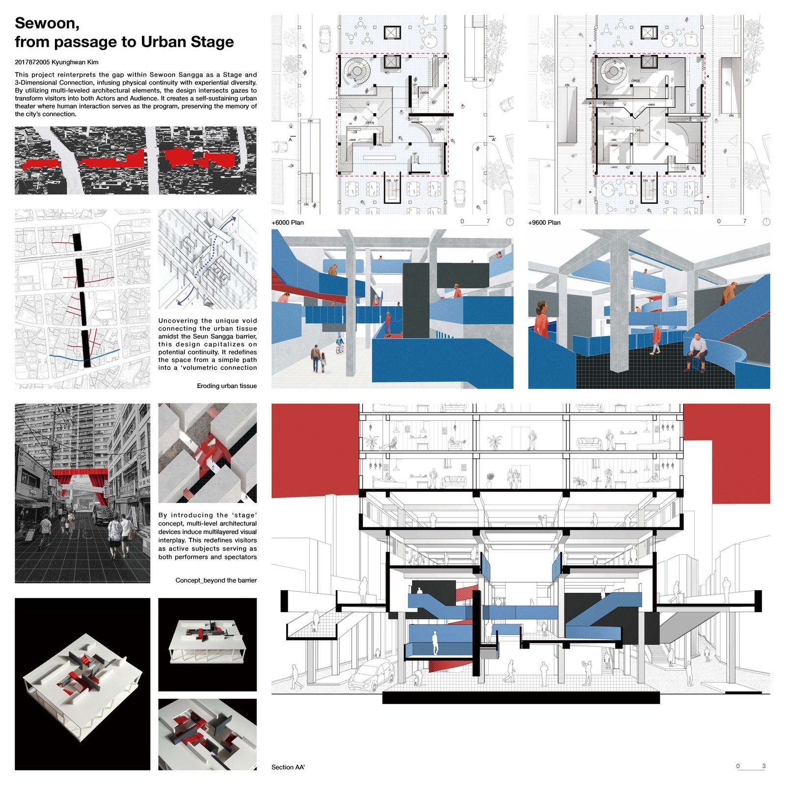 This project identifies a unique gap within the barrier of Sewoon Sangga that connects the existing urban fabric. Focusing on the value of its latent continuity, the project reinterprets this space not merely as a passageway but as a ‘Three-Dimensional Connection.’