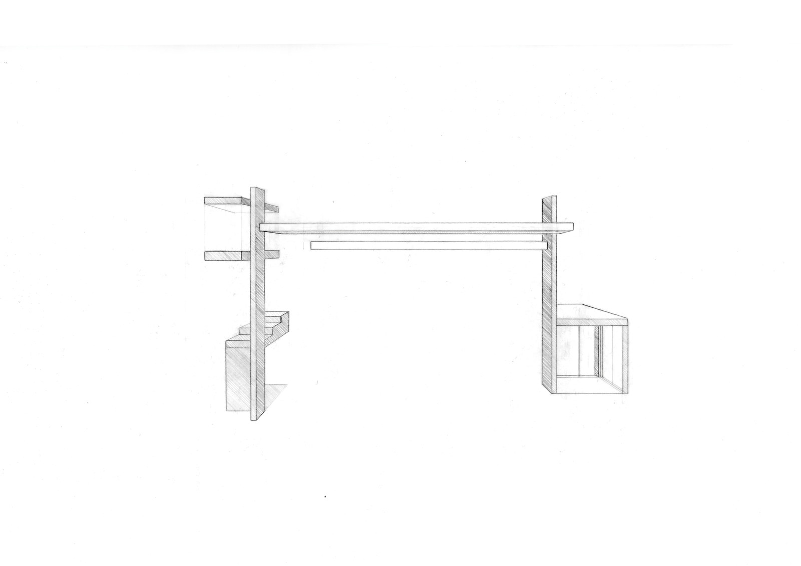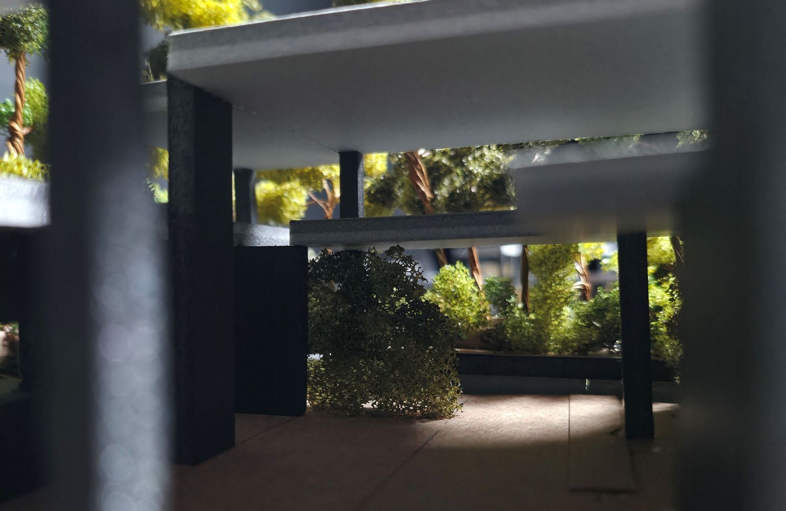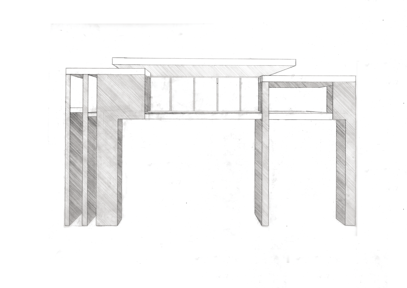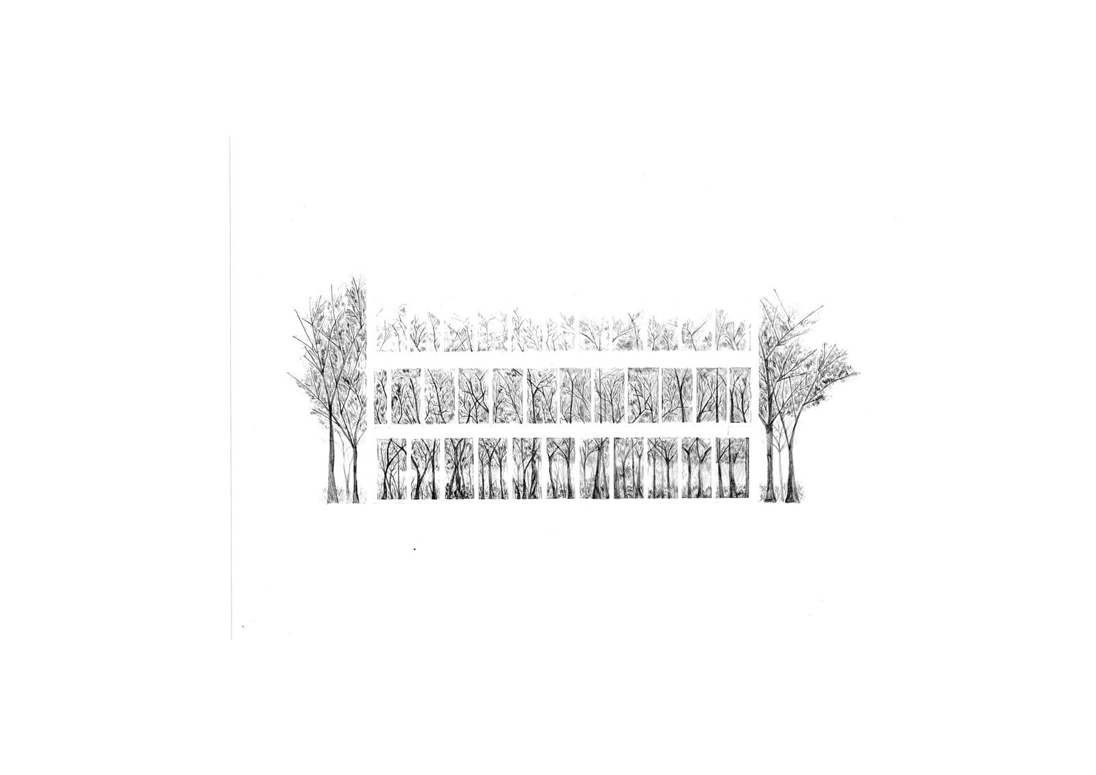 내가 삽입한 자연이 먼저 보이고, 외부의 자연이 건물의 기둥과 천장에 의해 내부로 들어오는 장면. 처음부터 이 장면을 보여주고자 하였고, 건물의 표현에서도 이 장면을 보여주고 싶었다. 그래서 이 사진과 참고한 스케치를 기반으로 드로잉을 시작했다