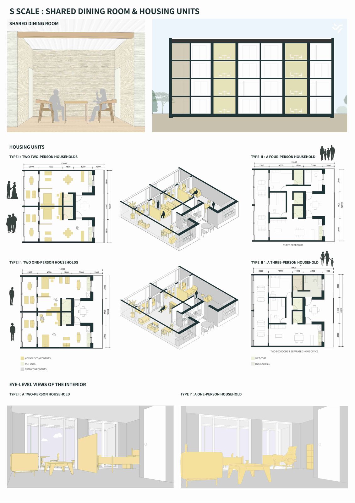 In this way, the project proposes a flexible housing system that can be rearranged or combined according to residents' needs.