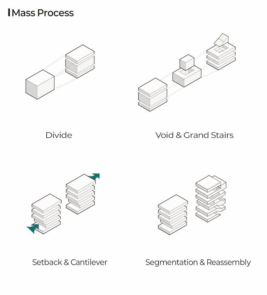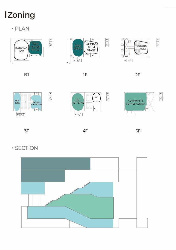 세 번째, ‘흥미로운 분리’라는 의미에서의 흥미로운이다. 정적인 나이가 있으신 어르신들을 위한 공간과 주민센터를 활동적인 어린이, 청소년을 위한 공간과 한 건물에 존재하기 위해서는 적절한 분리가 필요하다고 생각한다. 이를 위해서 아트리움과 같이 서로가 실질적으로는 분리가 되어있지만 심적으로는 가까이 존재한다는 느낌을 주려고 한다.