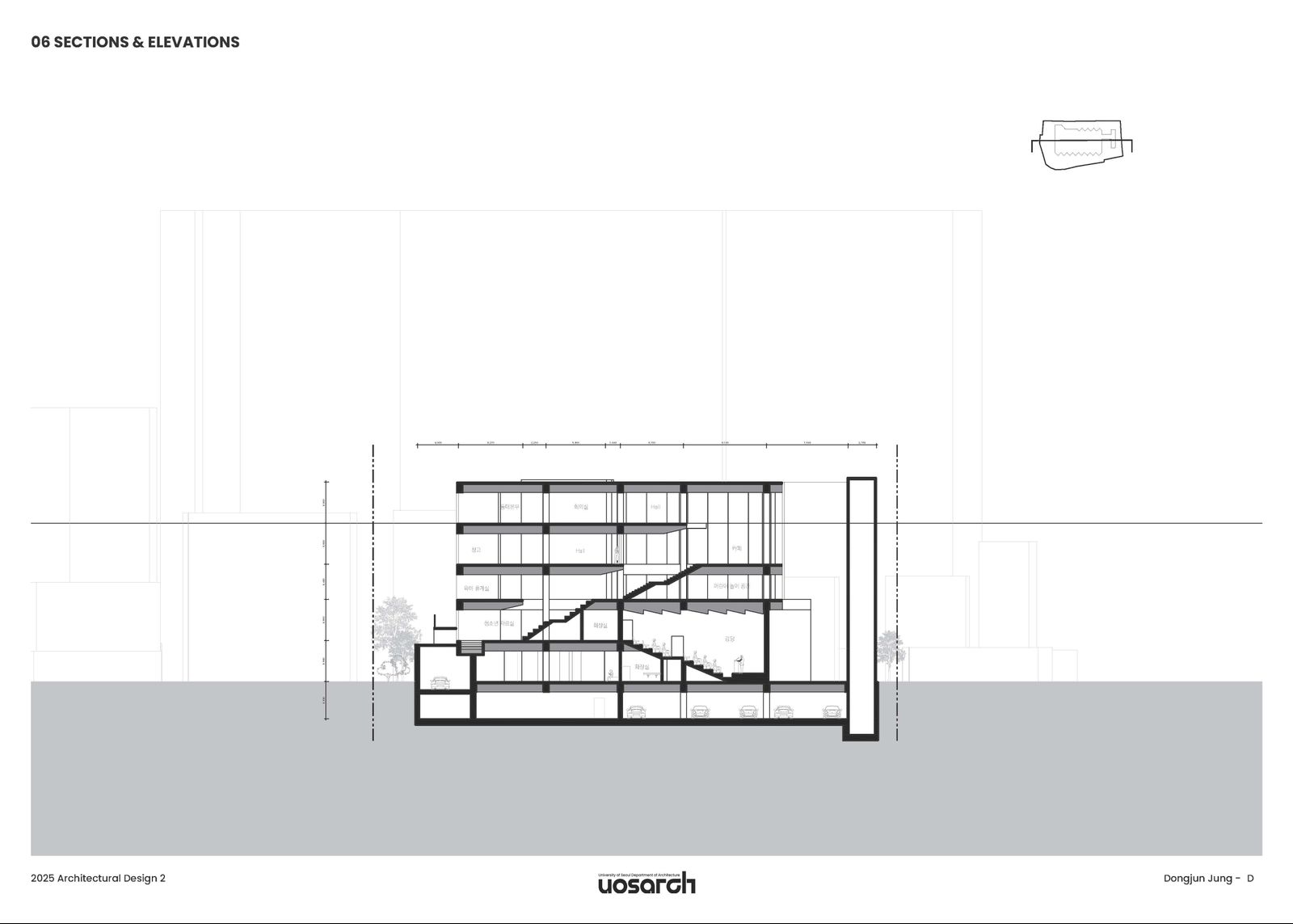 단면적으로 프로그램을 분리시킨 후 평면으로 끌고 와 프로그램들에 필요한 세부적인 공간들을 구성하였다.
