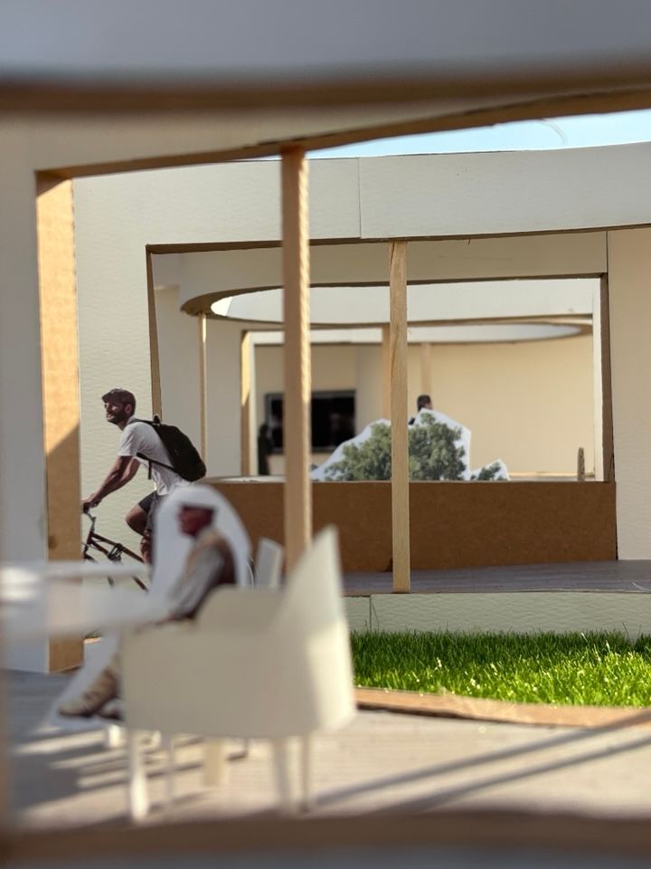 또한 각 공간마다 일어나는 행위들로 공간감을 주기도 하였다. 앉아 있거나 자전거를 타거나 복도를 지나는 행위들이 모두 합쳐져 공간의 깊이를 보여줄 수 있었다. 그리고 이 주택 모델에서 가장 중요한 요소는 바로 빛이었다. 빛이 없었을 때는 공간의 깊이가 잘 느껴지지 않았고, 표현에 있어서 부족한 느낌을 받았다. 하지만 빛이 있어 그림자가 생기고 이것이 최종적으로 내부와 외부를 구분시켜주면서, 공간의 깊이를 보여주는 키포인트가 되었다.