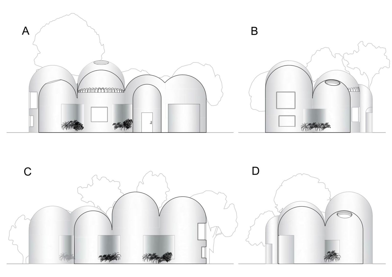 모서리: 이 집은 모서리가 없다. 기능적으로는 혹시나 부딪힘으로 인한 사고를 방지하기 위해, 심미적으로는 라운드한 집의 모양을 깨뜨리고 싶지 않았다.