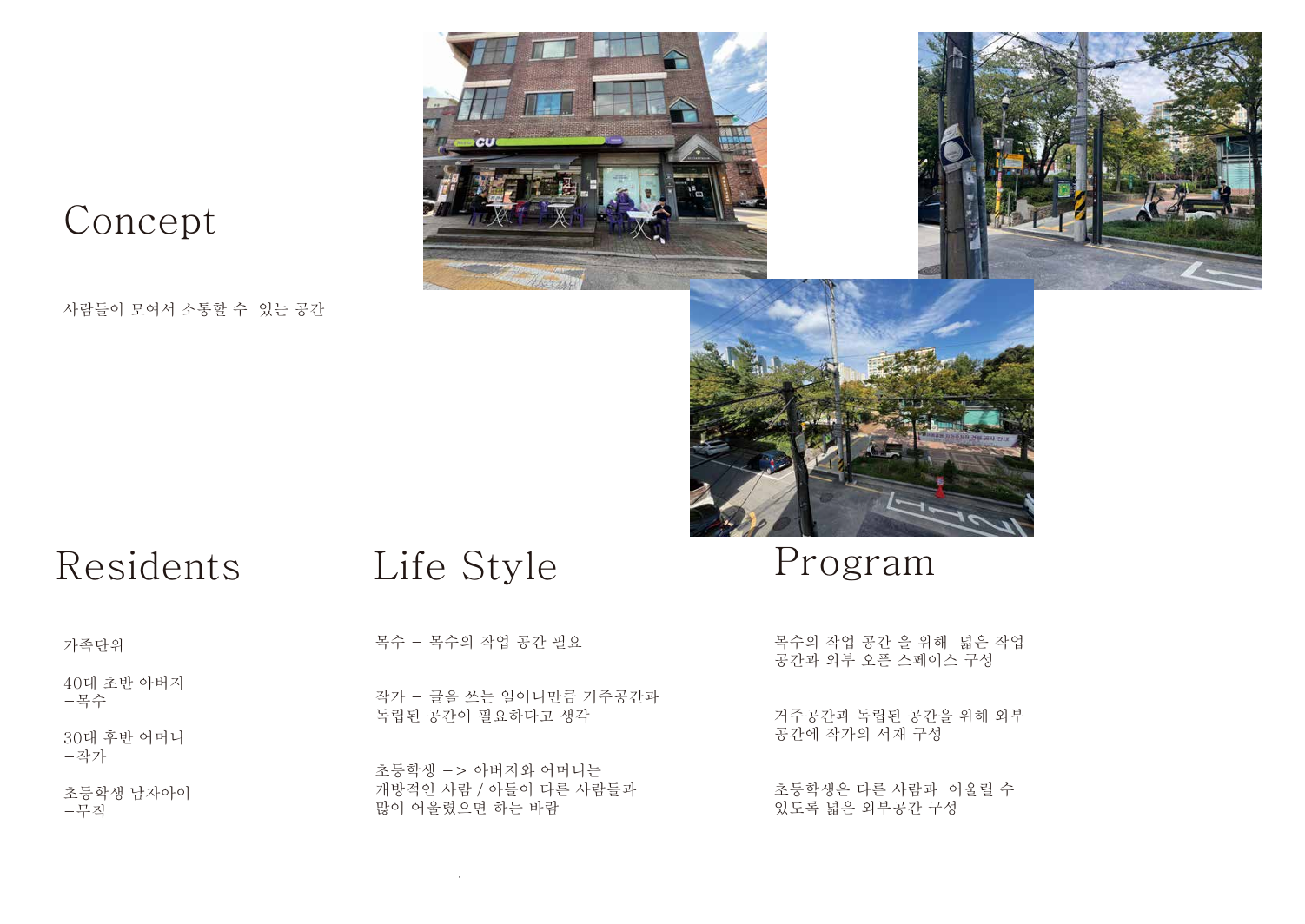 들어올린 부분에 작가의 독립공간이자 주민들의 커뮤니티 공간이 될 수 있는 부분을 배치하고 그 아래부분도 동네 주민들이 사용할 수 있는 공간으로 만들면 설득력이 생길 것이라고 판단했다.