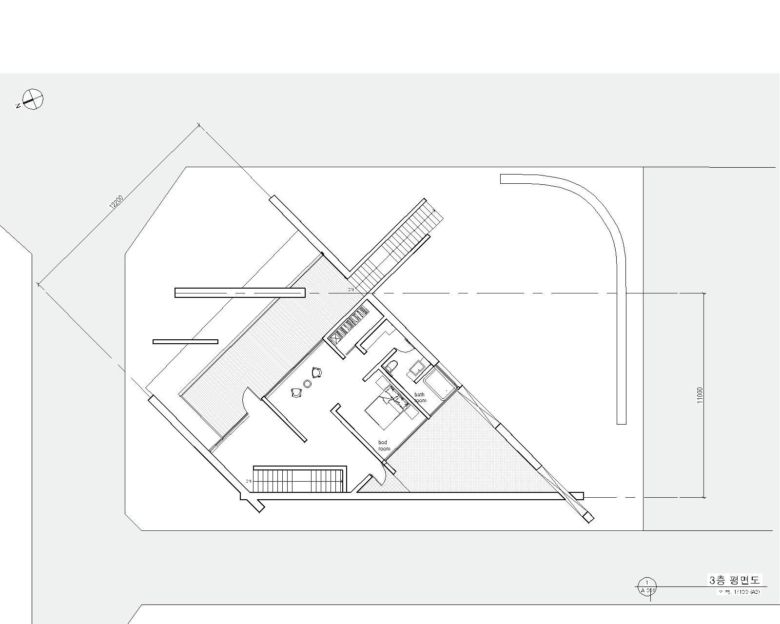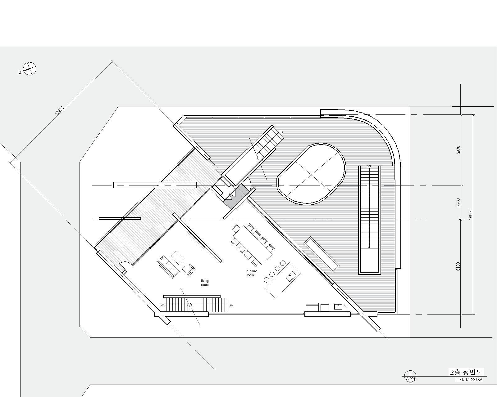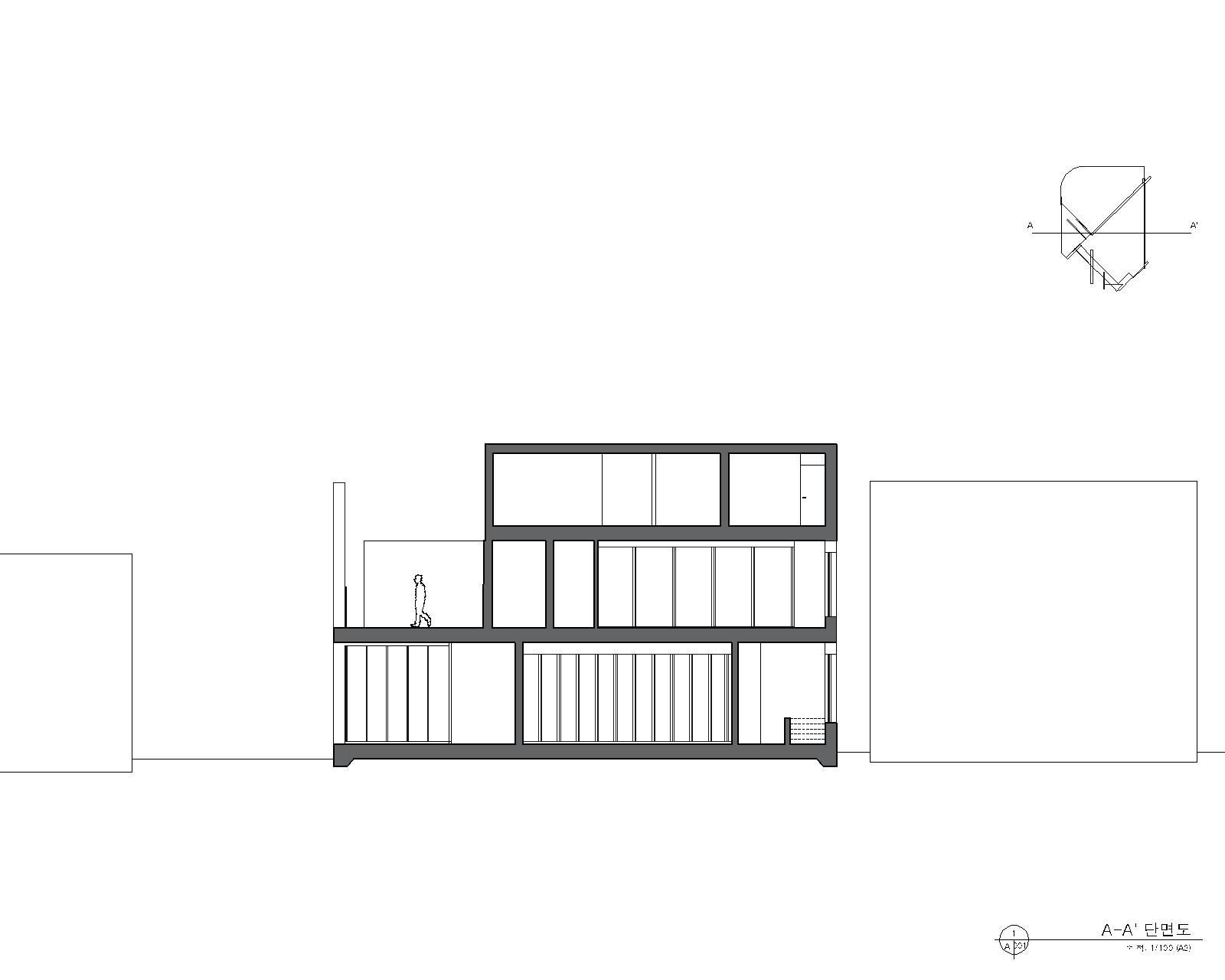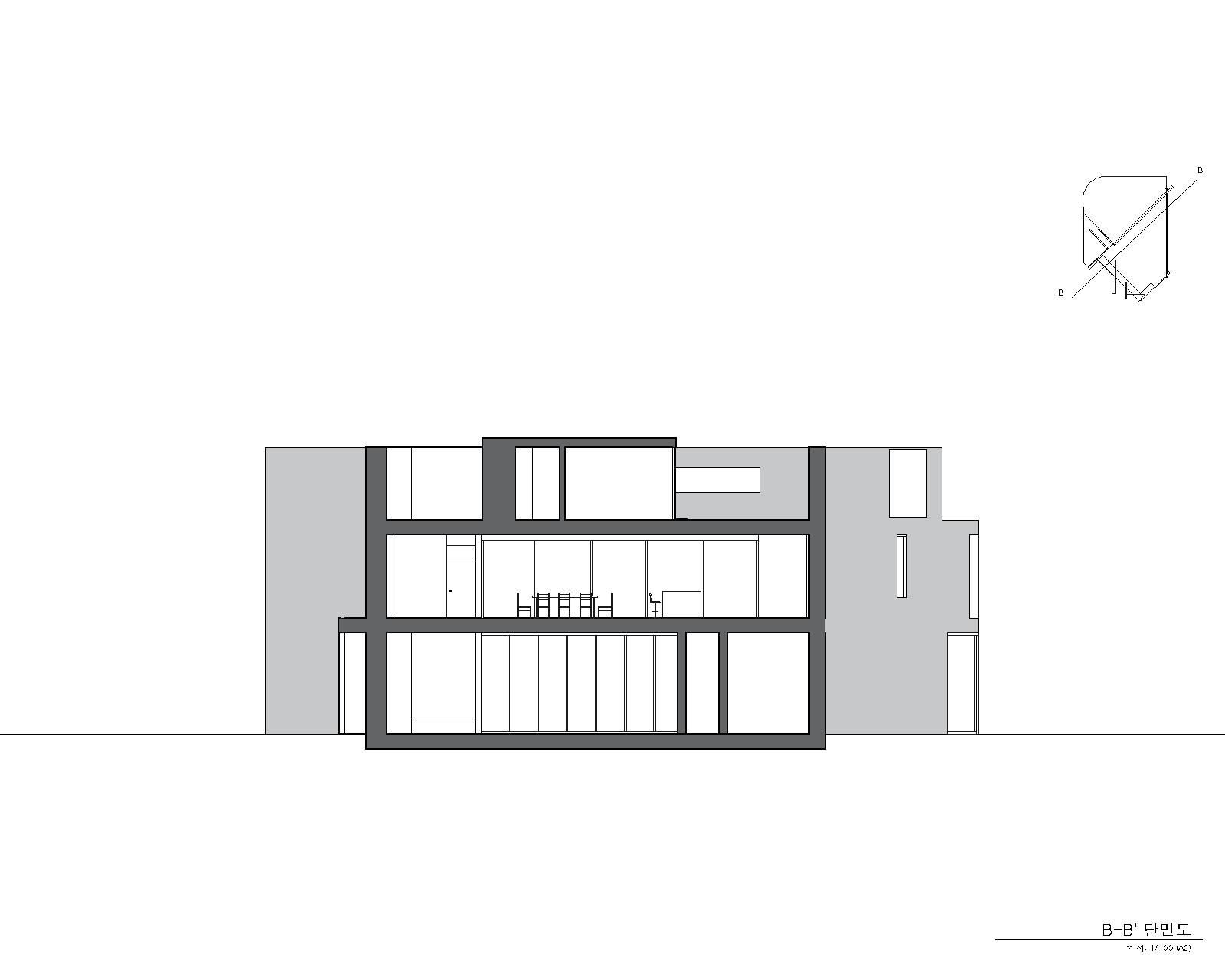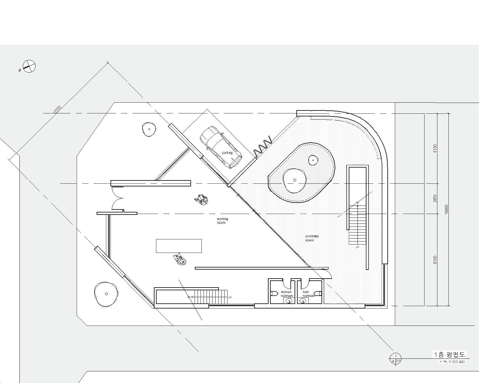 집의 정주인원은 예술 활동을 하는 노부부로 설정하고, 1층에 이들의 작품의 전시 공간이 있는 집을 계획하였다. 이 전시 공간이 주민들에게 있어 간데메 공원과의 연결, 확장의 느낌을 주기 위해 사이트 B를 선택하였다.
