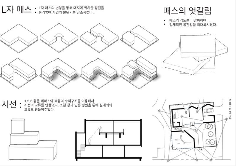 집은 나에게 있어서 편안하게 쉬는 곳이여야 한다. 편안하게 쉬려면 삭막하고 차가운 분위기의 콘크리트 뷰 보다는 나무 같은 자연을 바라보는 뷰가 더 편안하다. 그리고 단조로운 생활과 시선을 방지하여 늘 새로움을 느껴 편안함 뿐만 아니라 재미도 찾을 수 있게 설계 해보았다