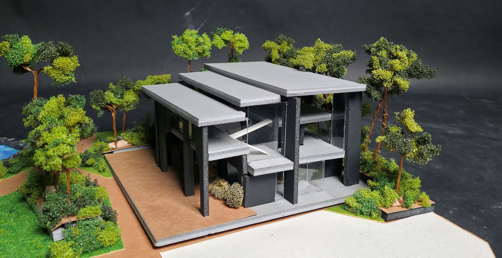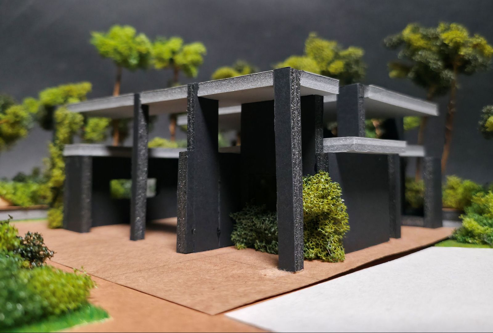 그렇게 기둥이 1층에서 2층으로 이어지며, 자연이 건물안에 삽입된 1차 모형을 제작했다.