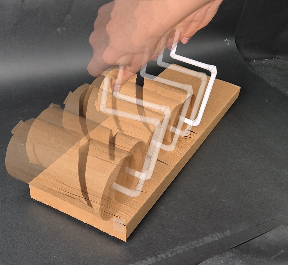 결국, 사진처럼 육면체의 한 면을 촘촘하게 그어, 롤러를 직접 굴리면서 롤러가 바닥과 상호작용하는 모습을 보여줄 수 있도록 하였다